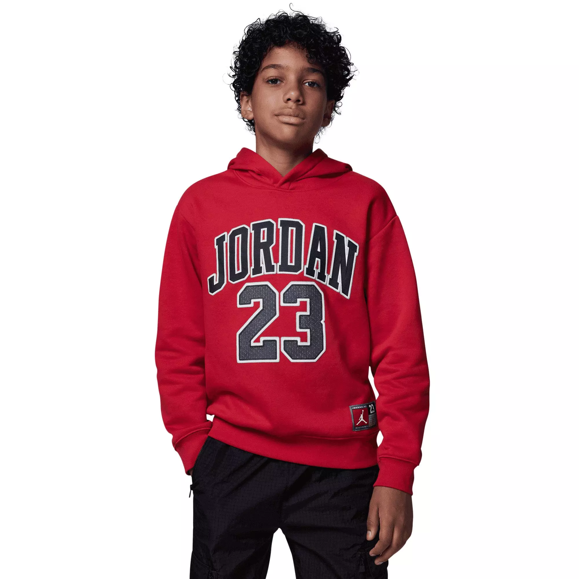 Watch your kid rule the Air in classic Jumpman style with the Jordan Big Boys' 23 HBR Fleece Pullover Hoodie. Made from a unique, ultra-soft cotton-poly blend fabric, this hoodie offers optimal resistance against wintry elements for a warm, snug fit.Features