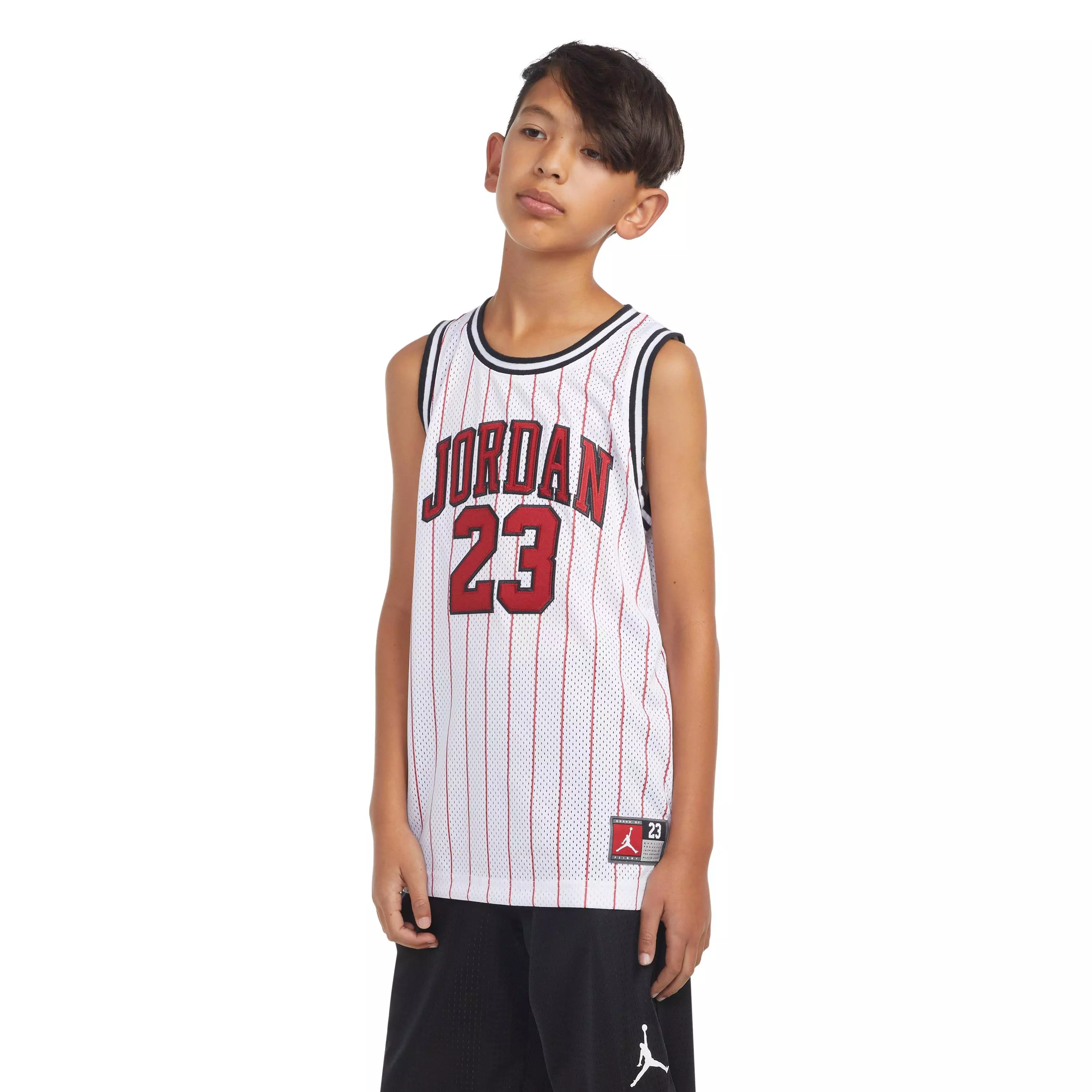 Every team has an iconic identity, the true colors that have resonated with fans for generations. The Jordan Big Boys' 23 Pinstripe Jersey has a drop-tail hem with side vents to let you move freely.