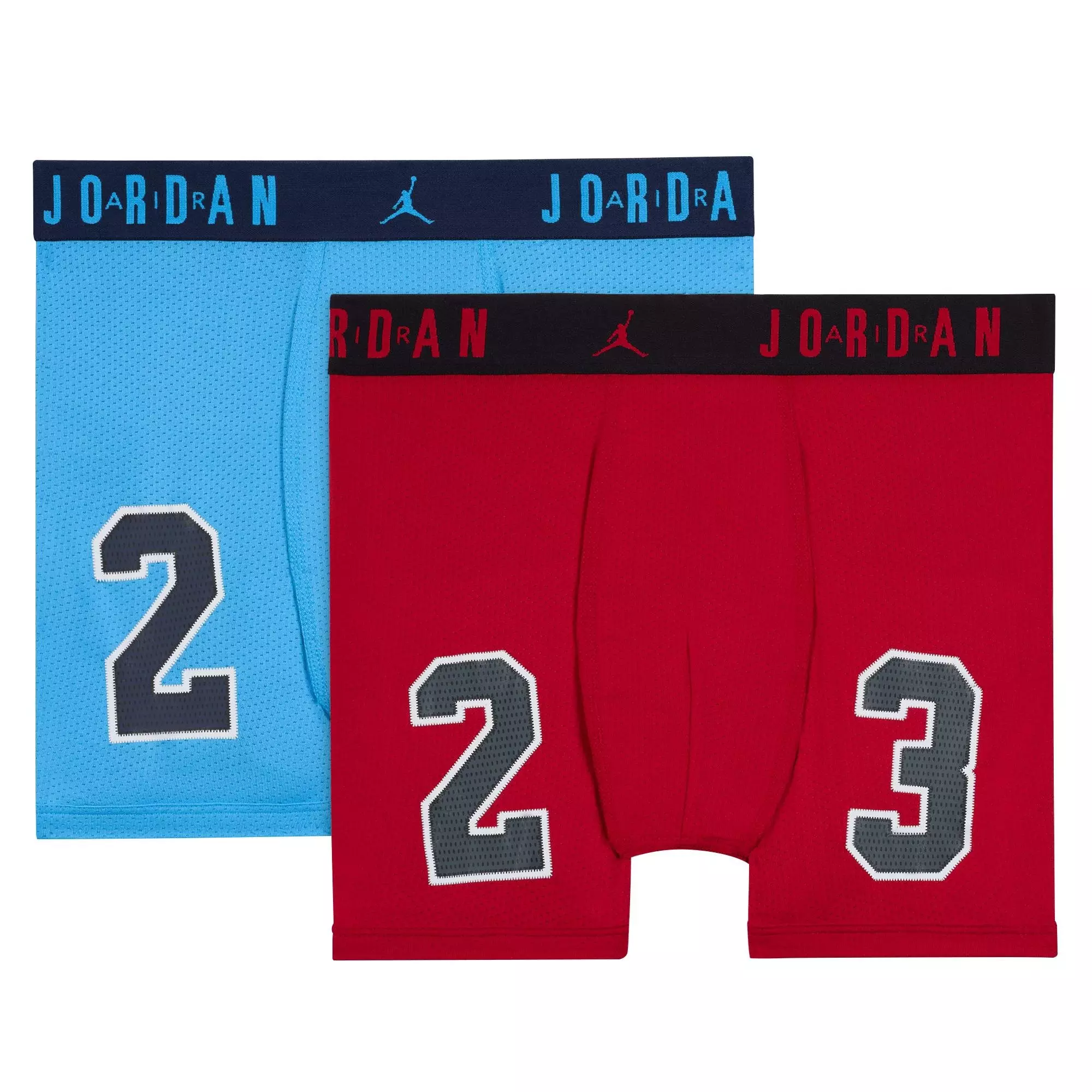These Jordan Big Boys' Flight Poly Mesh Jersey 2-Pack Briefs - Red/Blue are where performance wear starts. They are made of recycled poly knit fabric enhanced with moisture-wicking, quick-drying Dri-FIT technology to help you stay cool and dry as you move throughout the day. The elastic waistband provides a comfy fit and the closed pouch offers support where you need it most.Features
