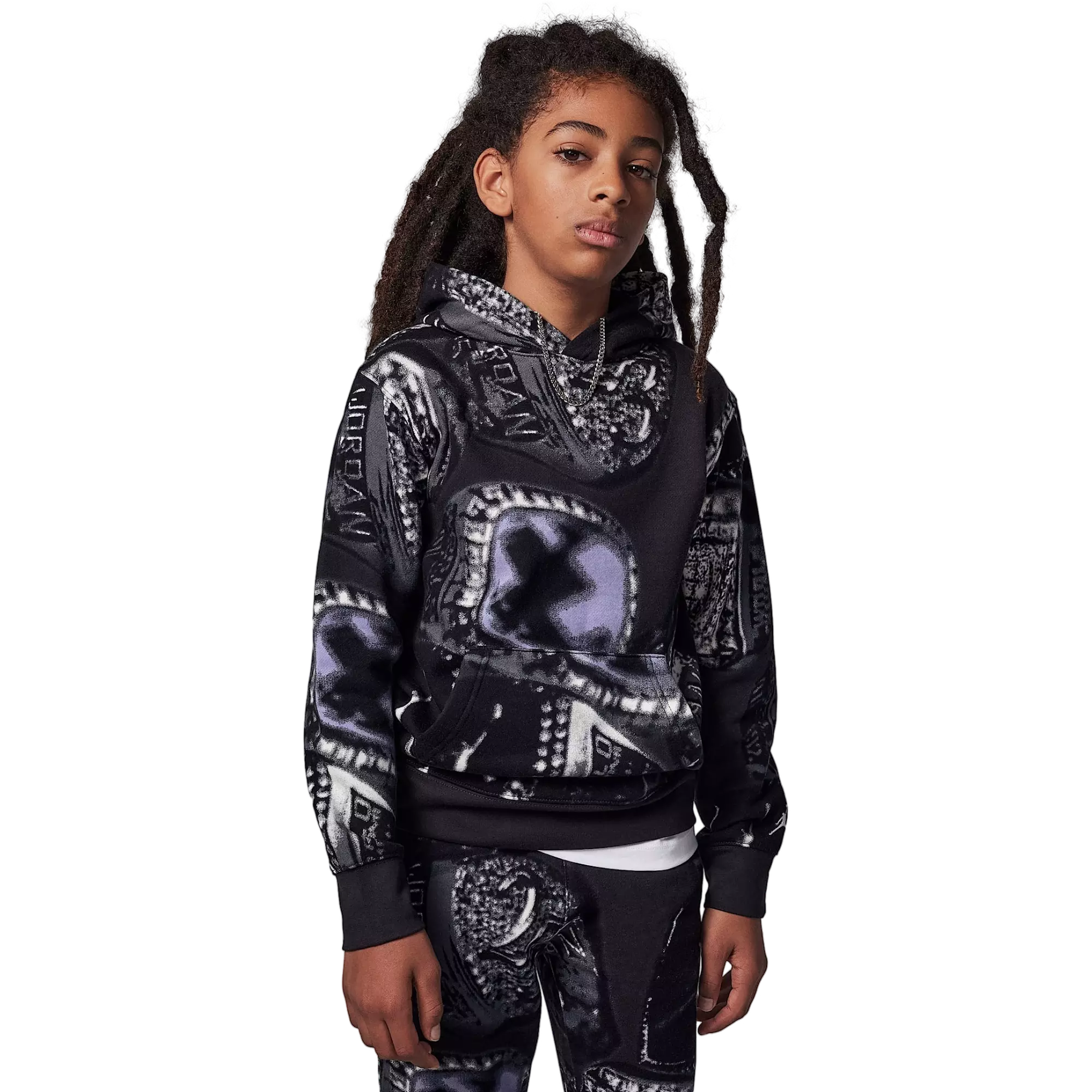 The Jordan Big Boys' MVP Fleece Printed Pullover Hoodie keeps kids comfortable in anti-pill cotton/poly fleece built for everyday wear. A roomy cut makes layering easy, while dropped shoulders deliver a relaxed feel they'll reach for on school days, practice, and weekends.