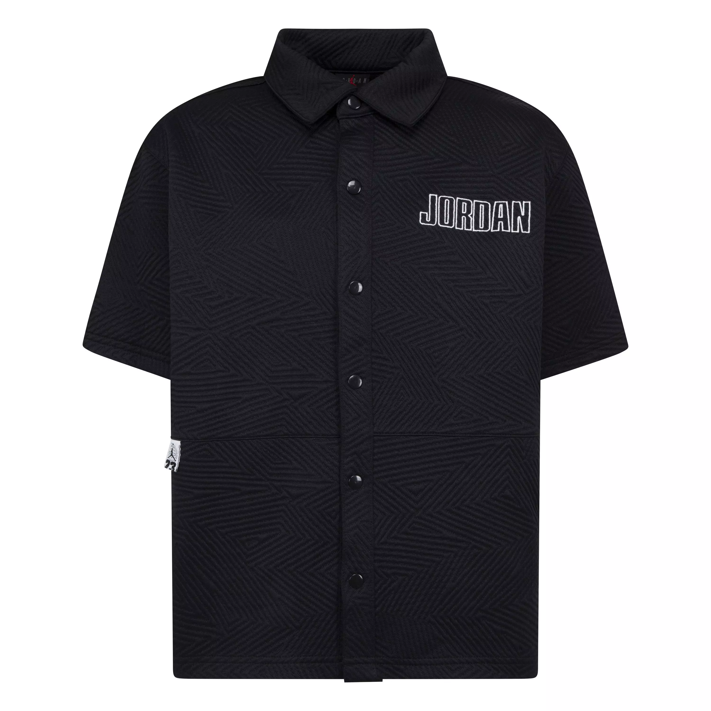 The Jordan Big Boys' Sneaker School Warm-Up Top features an allover knit zig-zag pattern and a design inspired by the classic warm-up top. Dropped shoulders create a relaxed fit, while the snap-front placket and roomy cut offer versatile styling options.