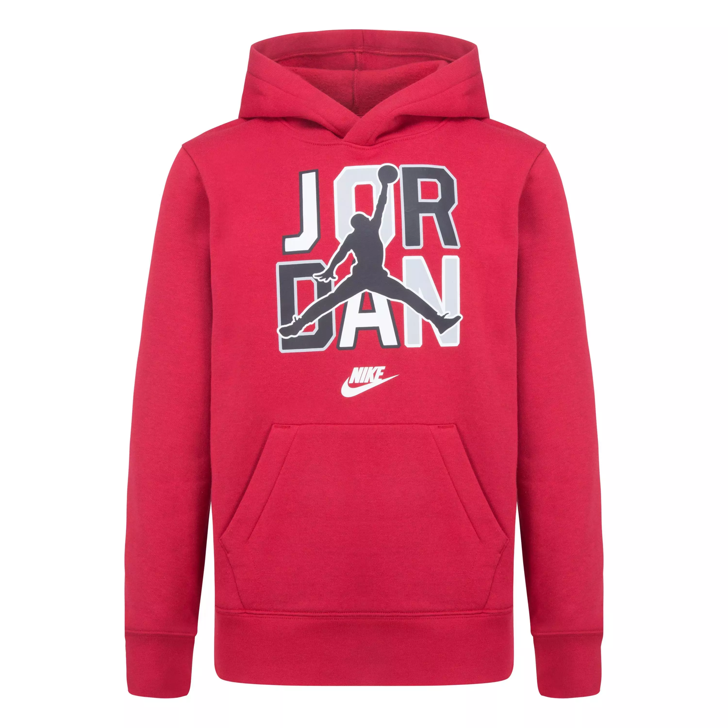 The Jordan Big Boys' Sport DNA Hoodie - Red delivers cozy comfort with a fleece knit fabric that feels soft against the skin. Designed with a roomy cut, it layers easily over tees or long sleeves, keeping kids warm without restricting movement during active days.