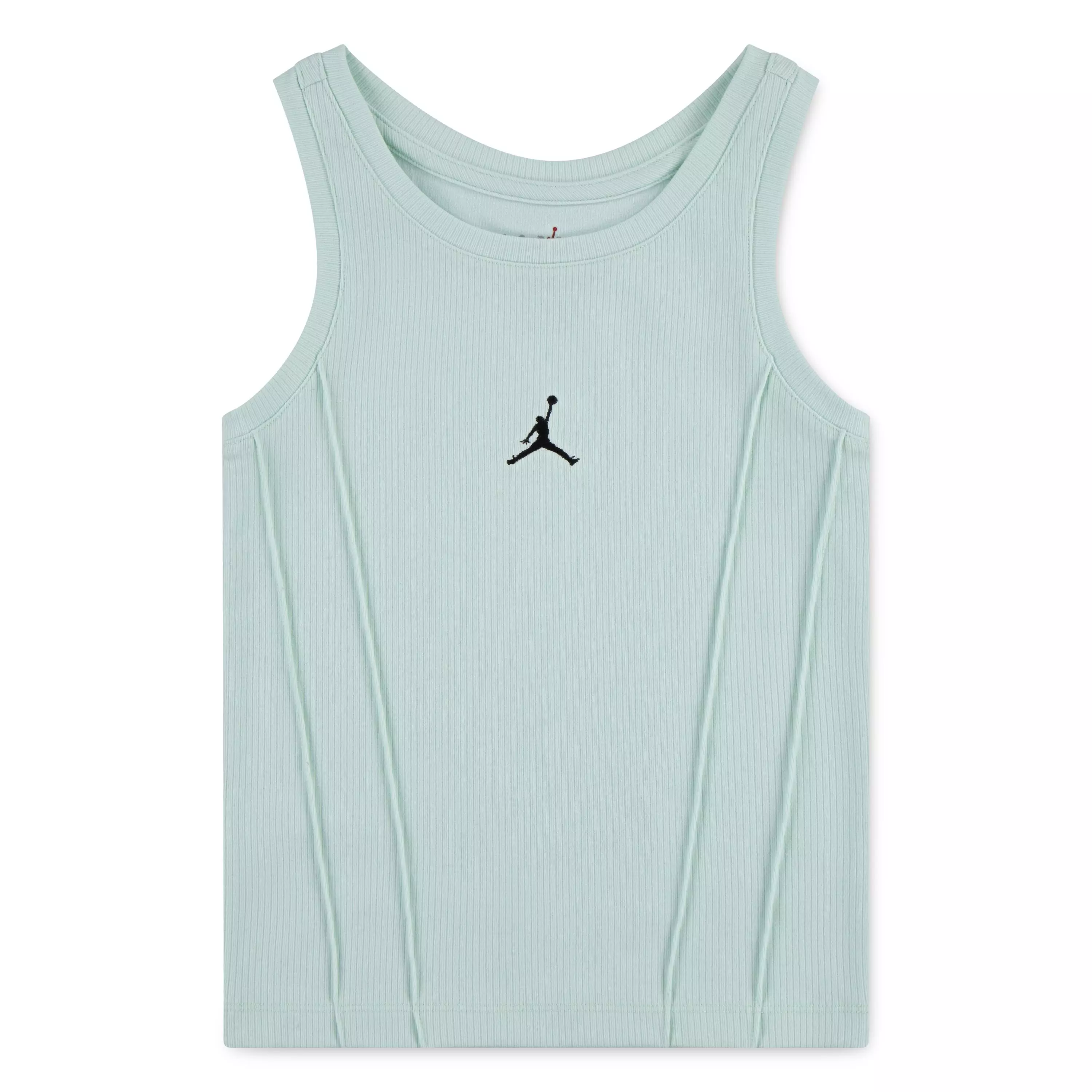 The Jordan Big Girls' Training Camp Pintuck Tank uses a cotton/poly rib knit blend with added stretch to move with you. Pintuck detailing on the front creates a sleek, modern look. The rib knit fabric stays soft after repeated wear.