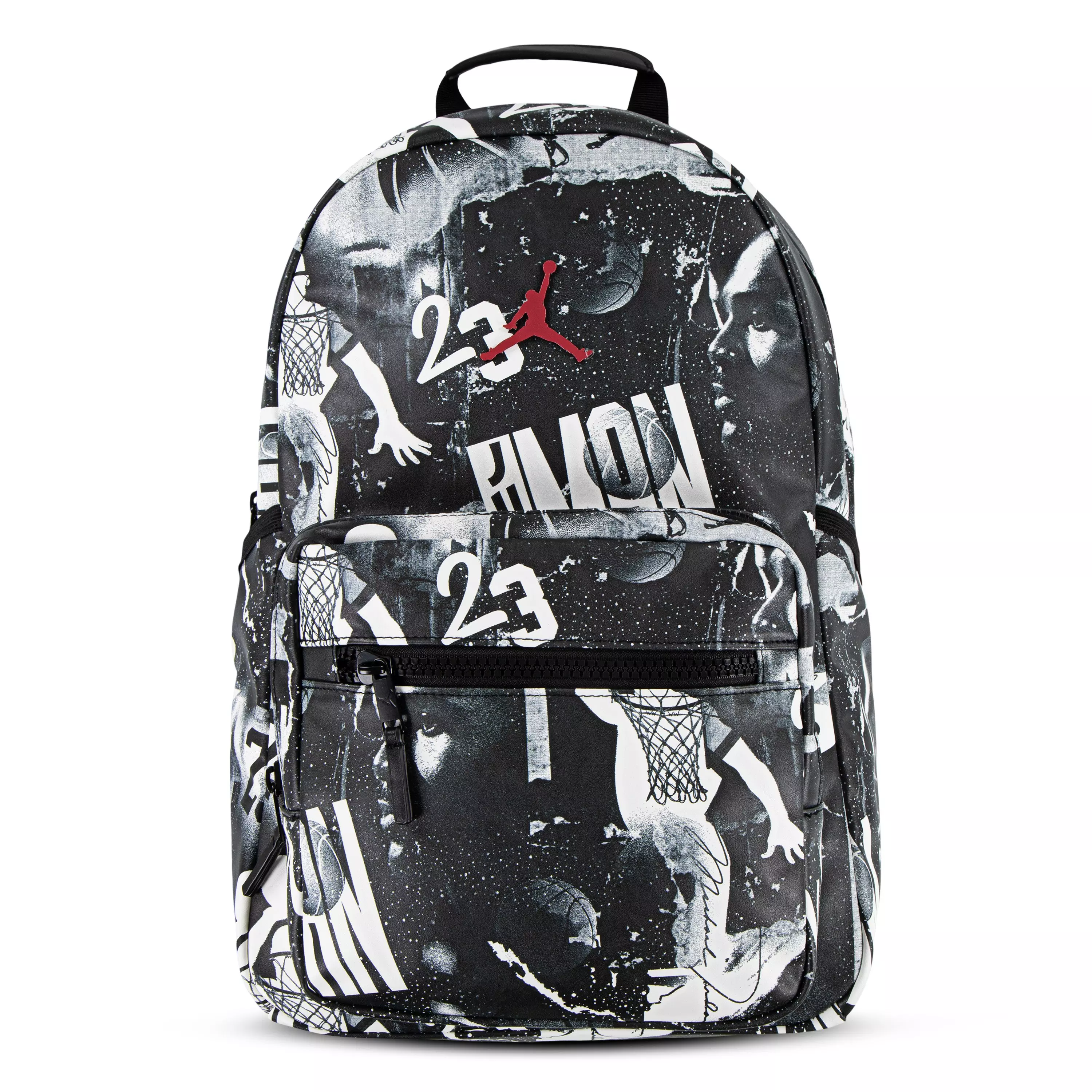 The Jordan Borough Printed Backpack - Black elevates your daily carry with pebbled faux leather, varsity-jacket styling, and subtle logo embroidery. A roomy main compartment with a two-way zipper keeps essentials secure, while an internal mesh zip pocket helps small items stay put.