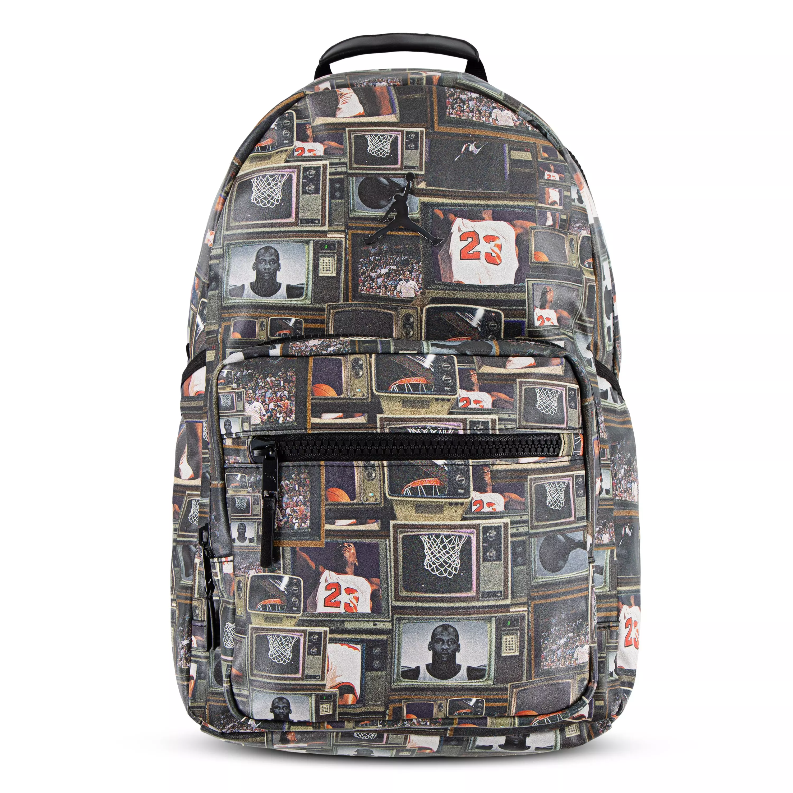 The Jordan Borough Varsity Backpack features pebbled faux leather and a varsity jacket inspired silhouette with embroidered logo detail. A spacious main compartment, secured by a two-way zipper, houses a mesh zippered pocket that keeps small items organized.