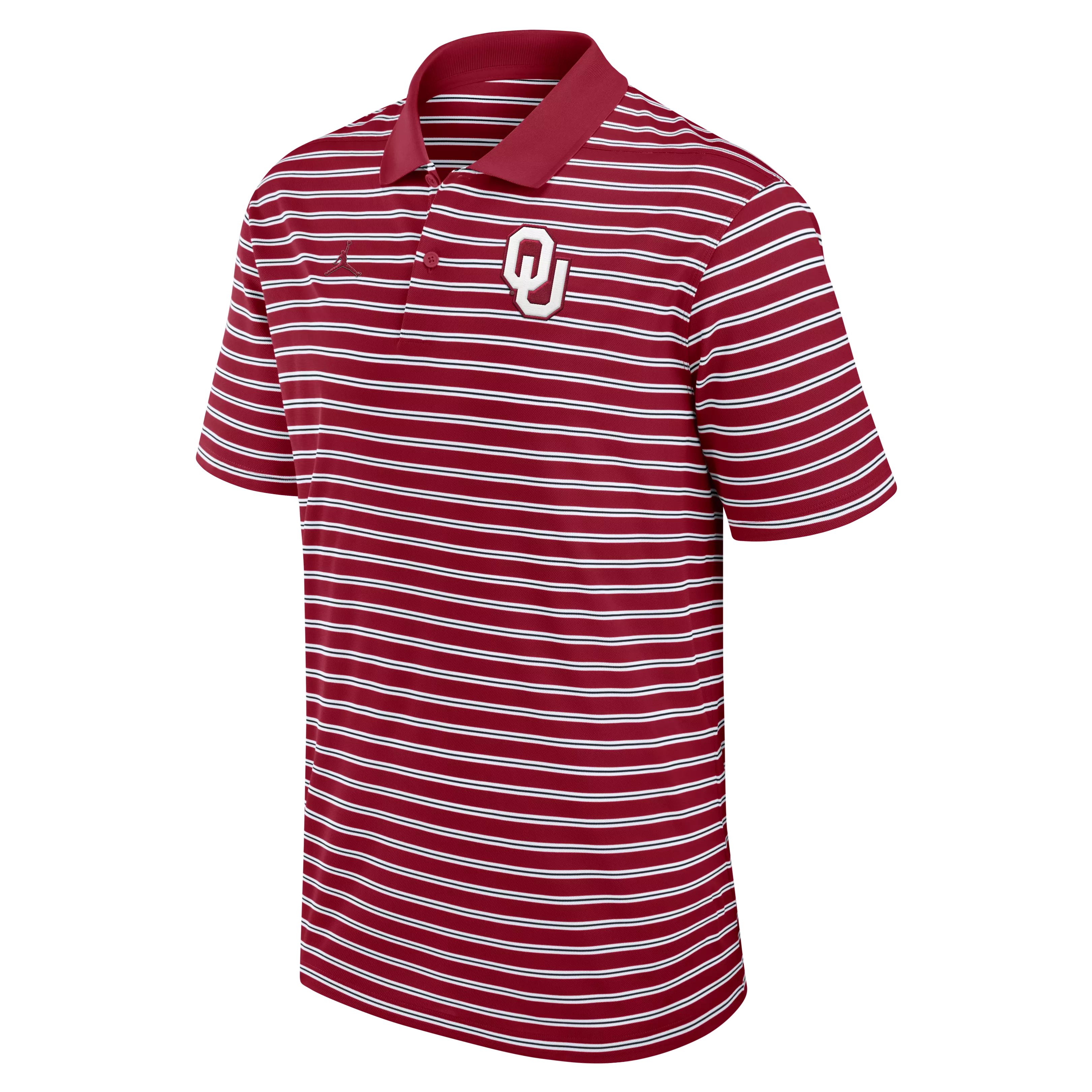 The Jordan Brand Men's Oklahoma Sooners Striped Polo-Red shows your school pride with an embroidered team logo at the left chest and a timeless striped pattern.