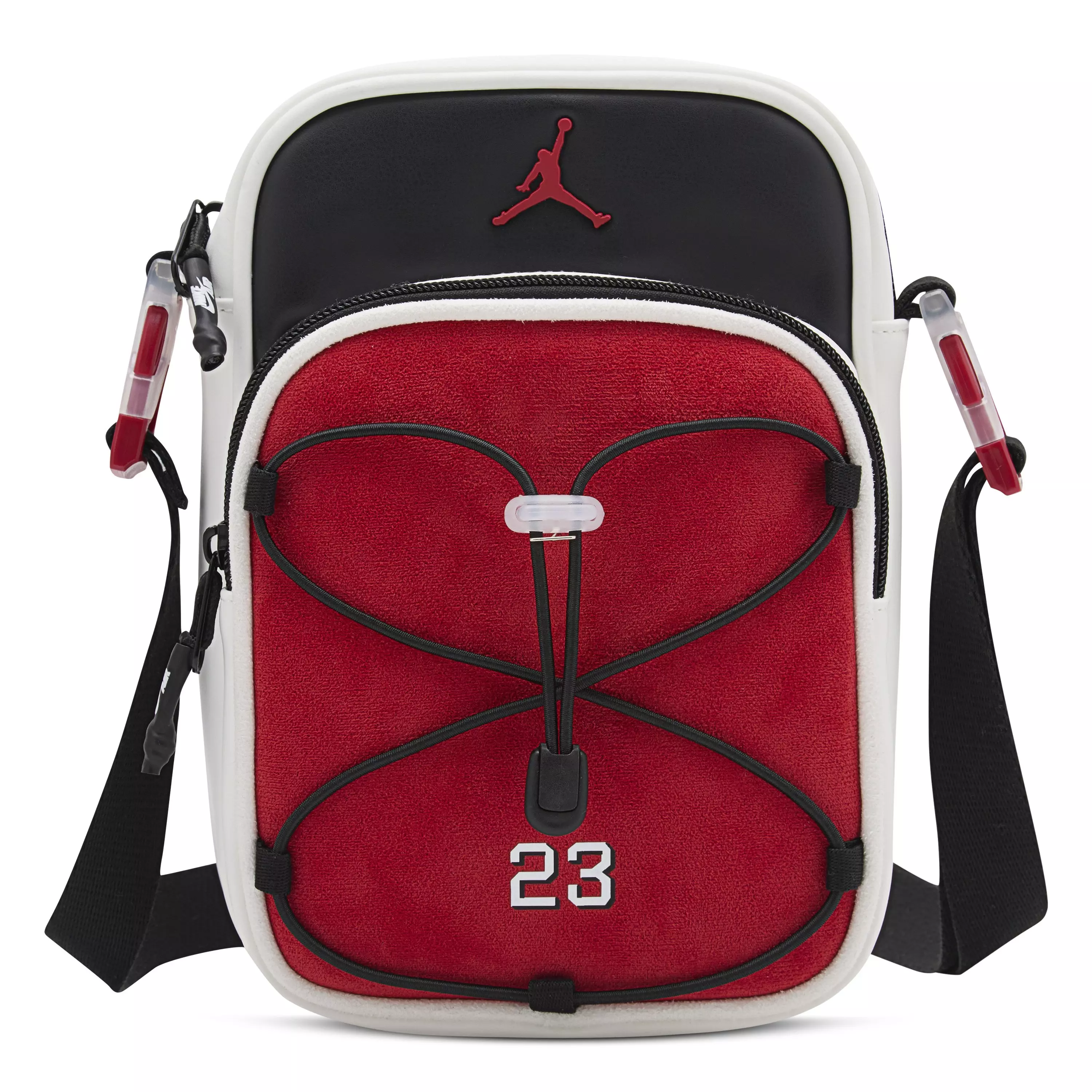 The Jordan Festival Crossbody Bag-White/Red/Black keeps essentials close without the bulk, making it ideal for stadiums, concerts, and everyday errands. Its compact, streamlined shape sits comfortably across your body so you can move through crowds with ease while staying hands-free.