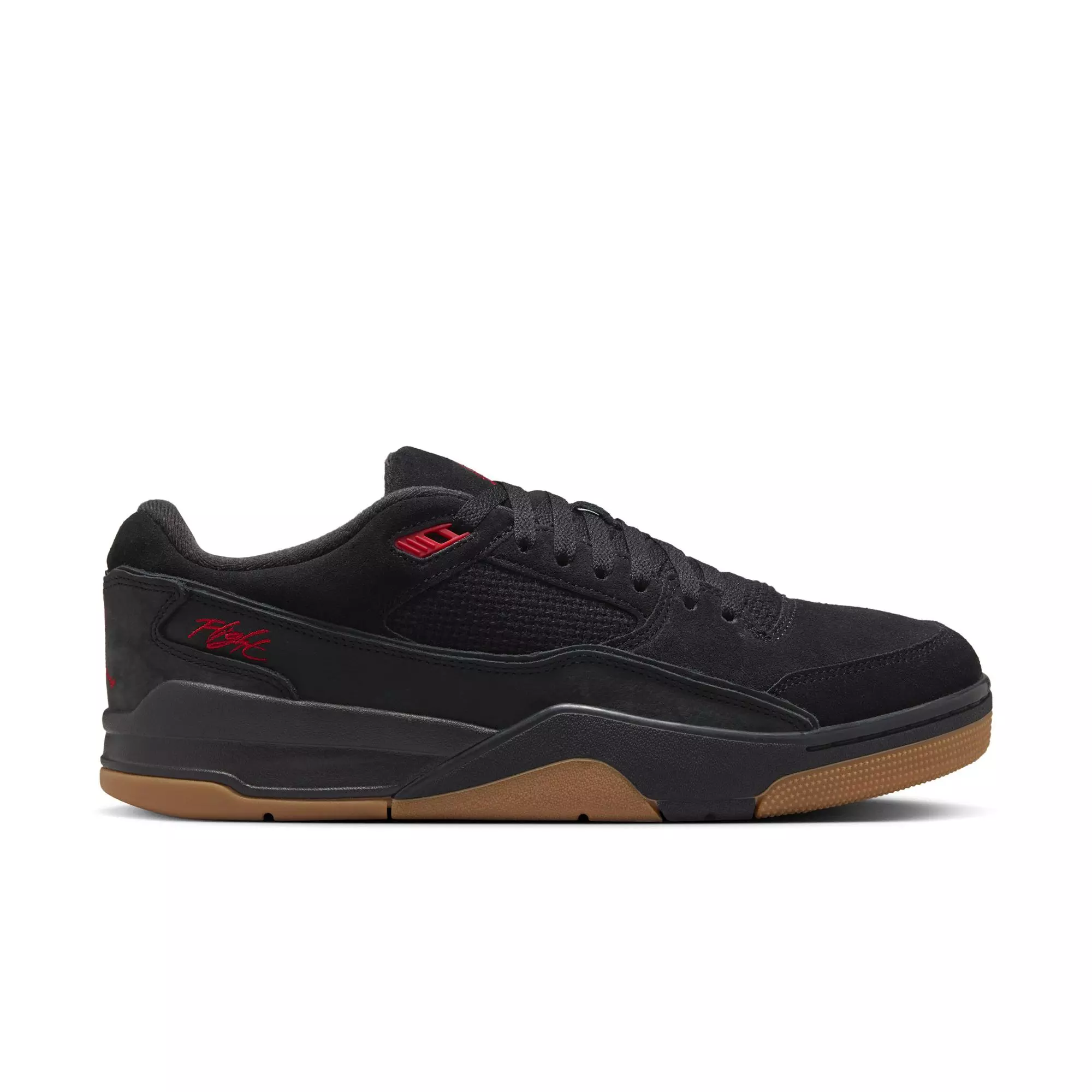 Blending heritage from AJ3, AJ4 and AJ5, the Jordan Flight Court "Black/Varsity Red/Gum Med Brown" Men's Shoe embraces the past while elevating modern comfort. Precision crafting pairs smooth leather with soft suede, delivering lasting style and durability.