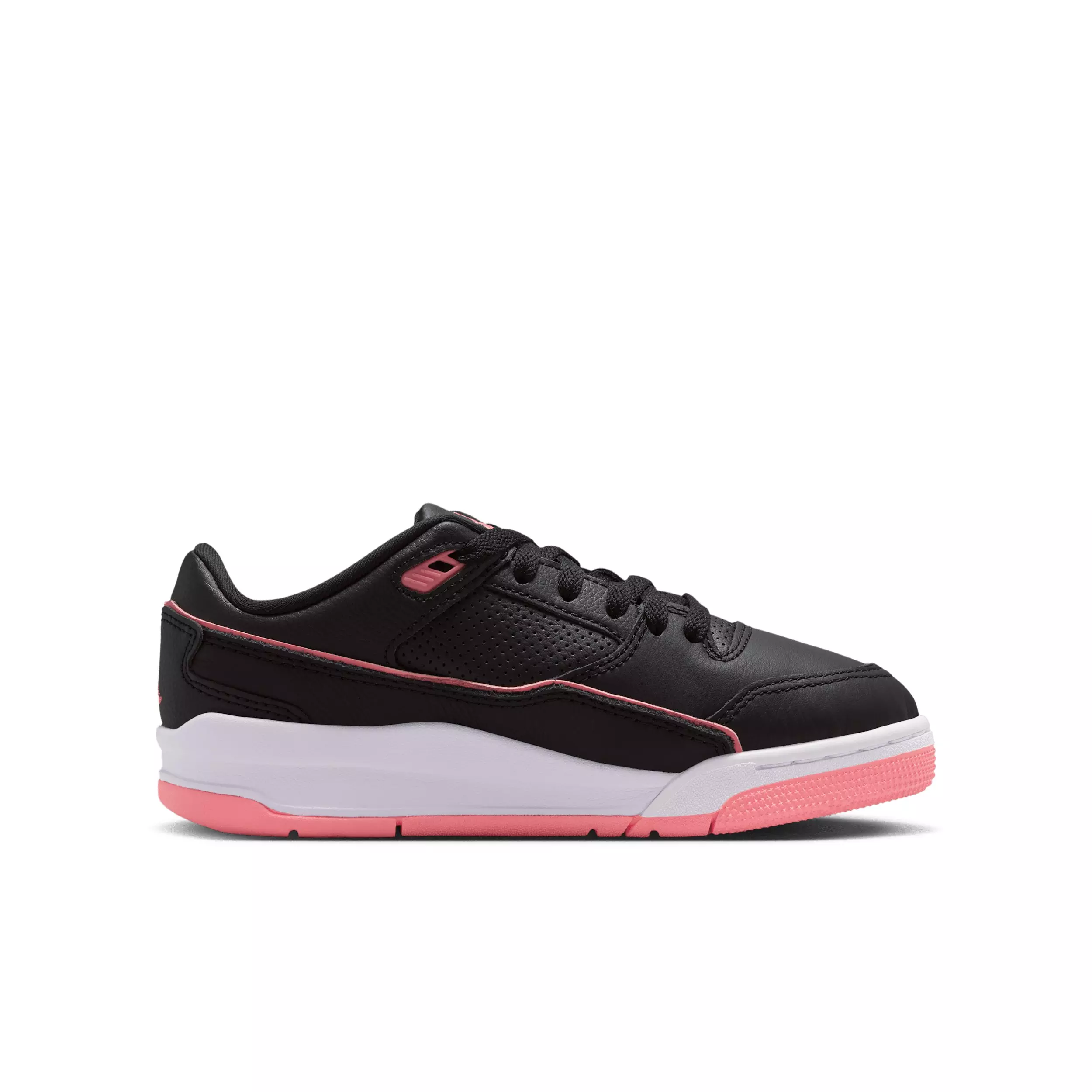 Inspired by the past, built for tomorrow. We took details from some of our favorite Air Jordans—the 3, 4 and 5—and remixed them to create a fresh classic with Jordan Flight Court "Black/White/Pink Gaze" Grade School Girls' Shoe. Smooth leather and soft suede give you style and durability while textile panels add breathability. Embroidered details infuse these kicks with Jordan heritage.Features