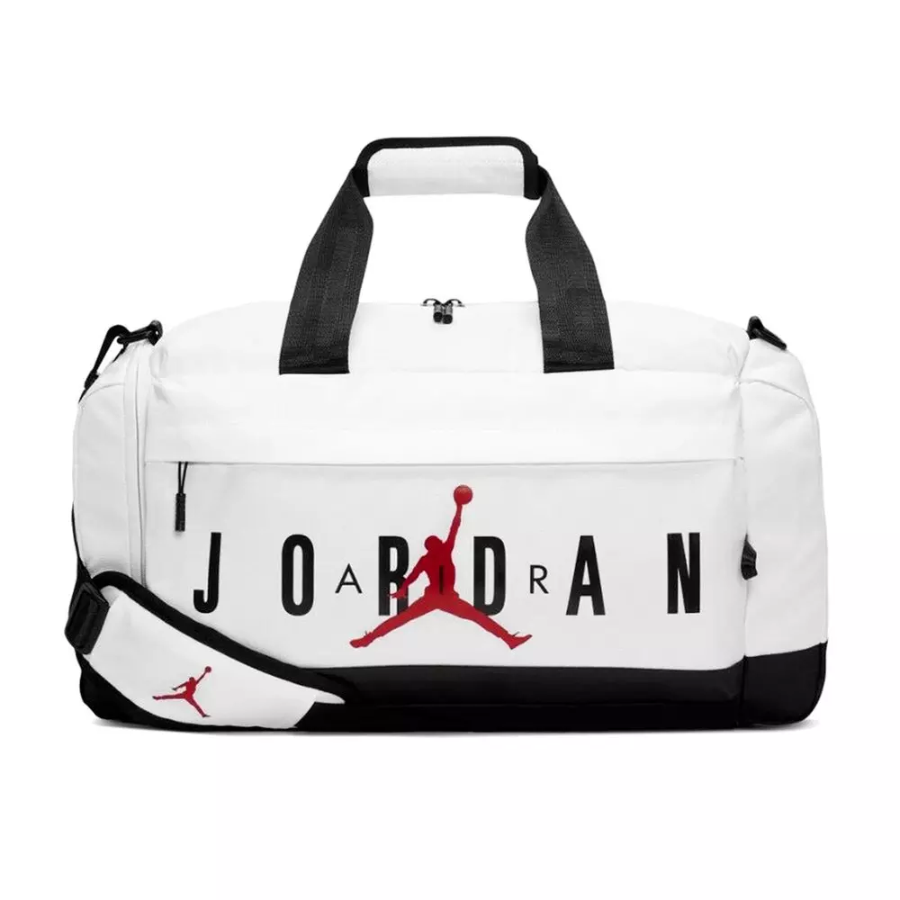The durable Jordan JAN Air Jordan Duffle Bag features a spacious main compartment for all your gear so you can feel prepared. Padded shoulder strap make it carrying comfortable, and multiple exterior pockets provide quick-grab convenience.Features