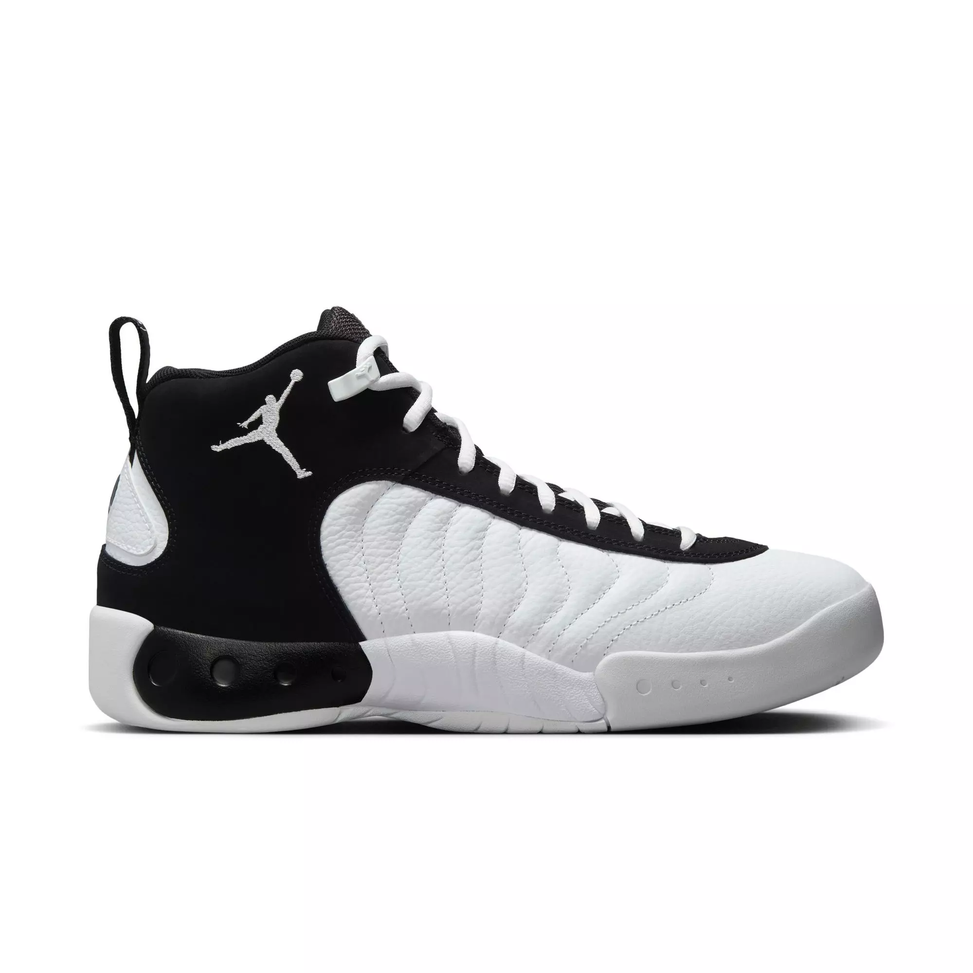 Jordan Jumpman Pro "White/Black" Men's ShoeIt's time for a comeback. The 25th anniversary of the Jordan Jumpman Pro "White/Black" Men's Shoe marks the return of this sleek, minimal shoe made with extra-luxe materials. With leather in the upper, plenty of Air cushioning in the sole, and just the right amount of bling, these premium kicks are a celebration of style and comfort. Cheers to that.