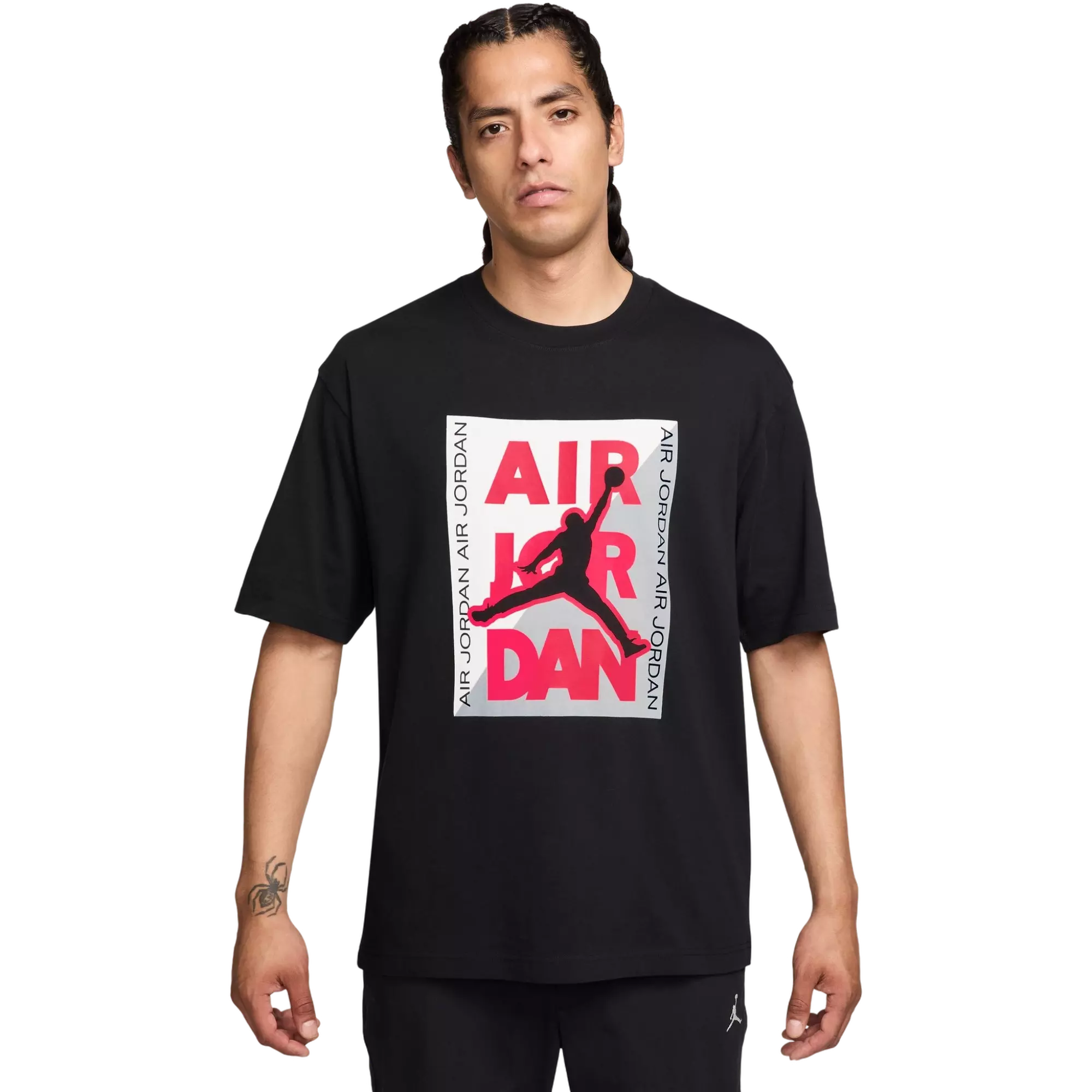 Step into everyday comfort with the Jordan Men's Air Box Graphic Tee-Black, crafted from midweight cotton in a classic fit. A soft crewneck and short sleeves make it an easy go-to for layering or solo wear.
