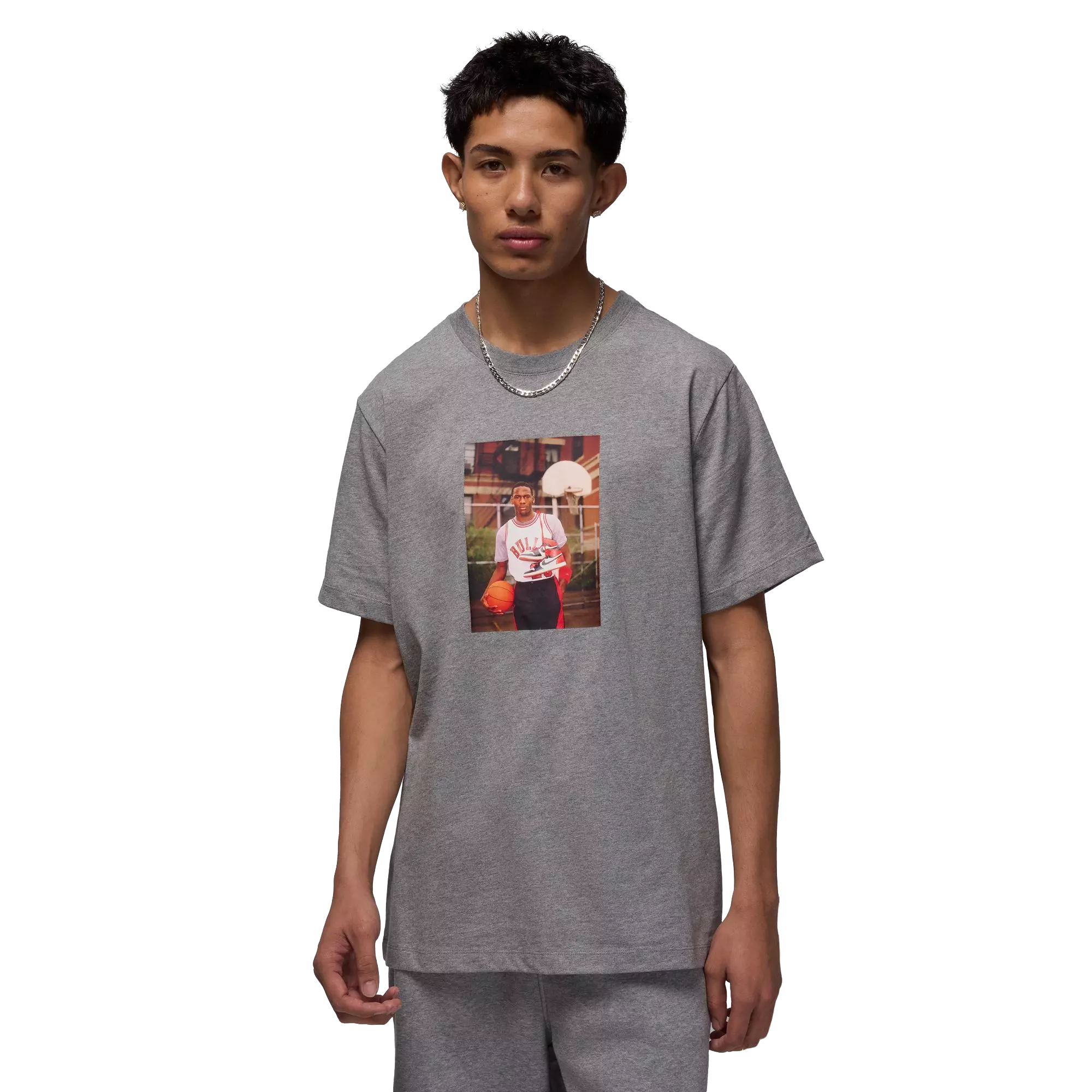 The Jordan Men's Brand Photo Tee is crafted from soft, midweight cotton that offers the perfect balance of comfort and structure. Its breathable fabric feels great against the skin while maintaining shape through repeated wear. The relaxed cut allows for easy movement across the shoulders and chest, making it an ideal choice for all-day comfort without added weight.A bold photo graphic of MJ sits front and center, creating a standout focal point. The clean, minimalist design keeps the attention on the image, giving your outfit a sleek yet iconic edge that works in both casual and sporty settings.