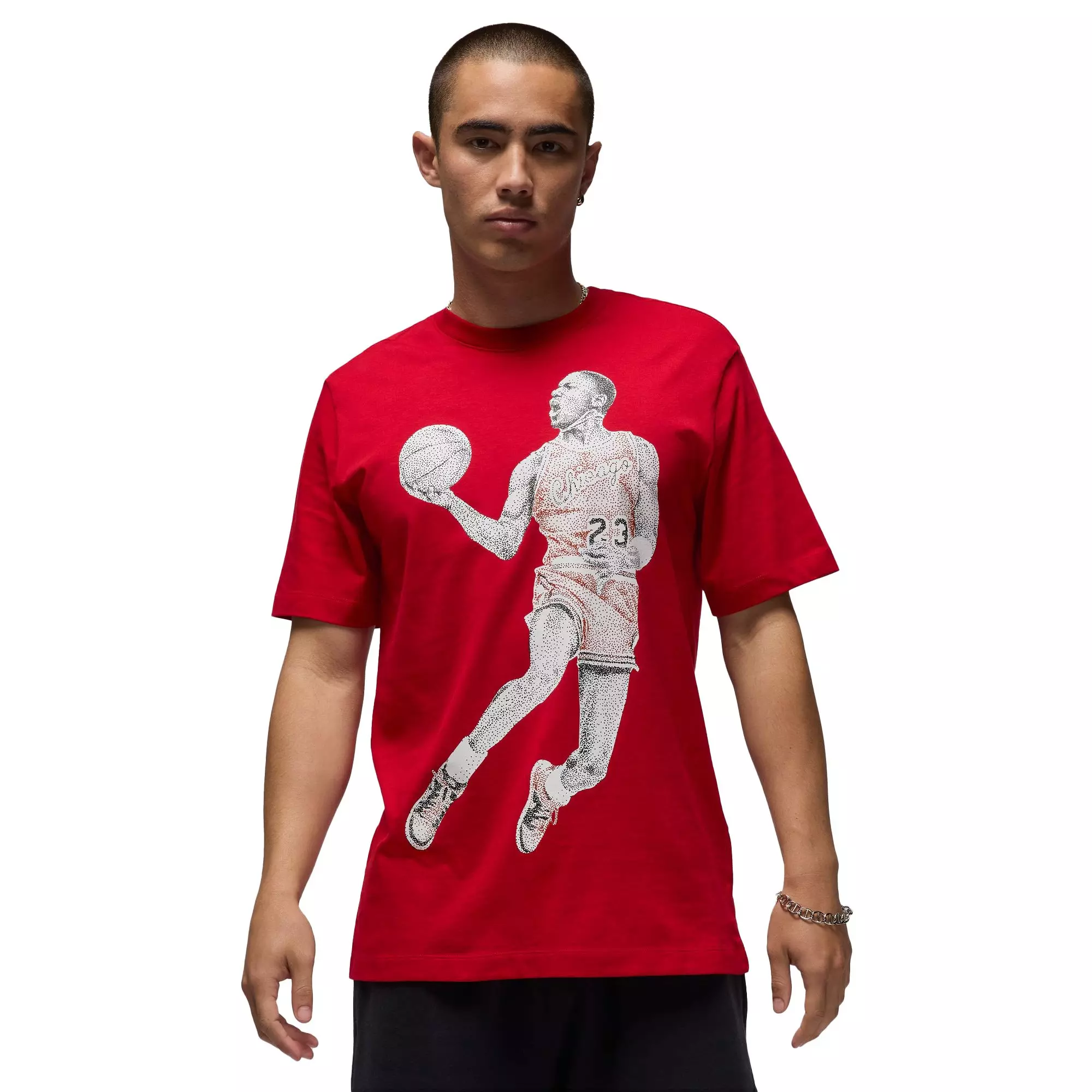 The Jordan Men's Brand Tee-Red brings Jordan heritage to your rotation with a simple crewneck and bold graphic appeal.