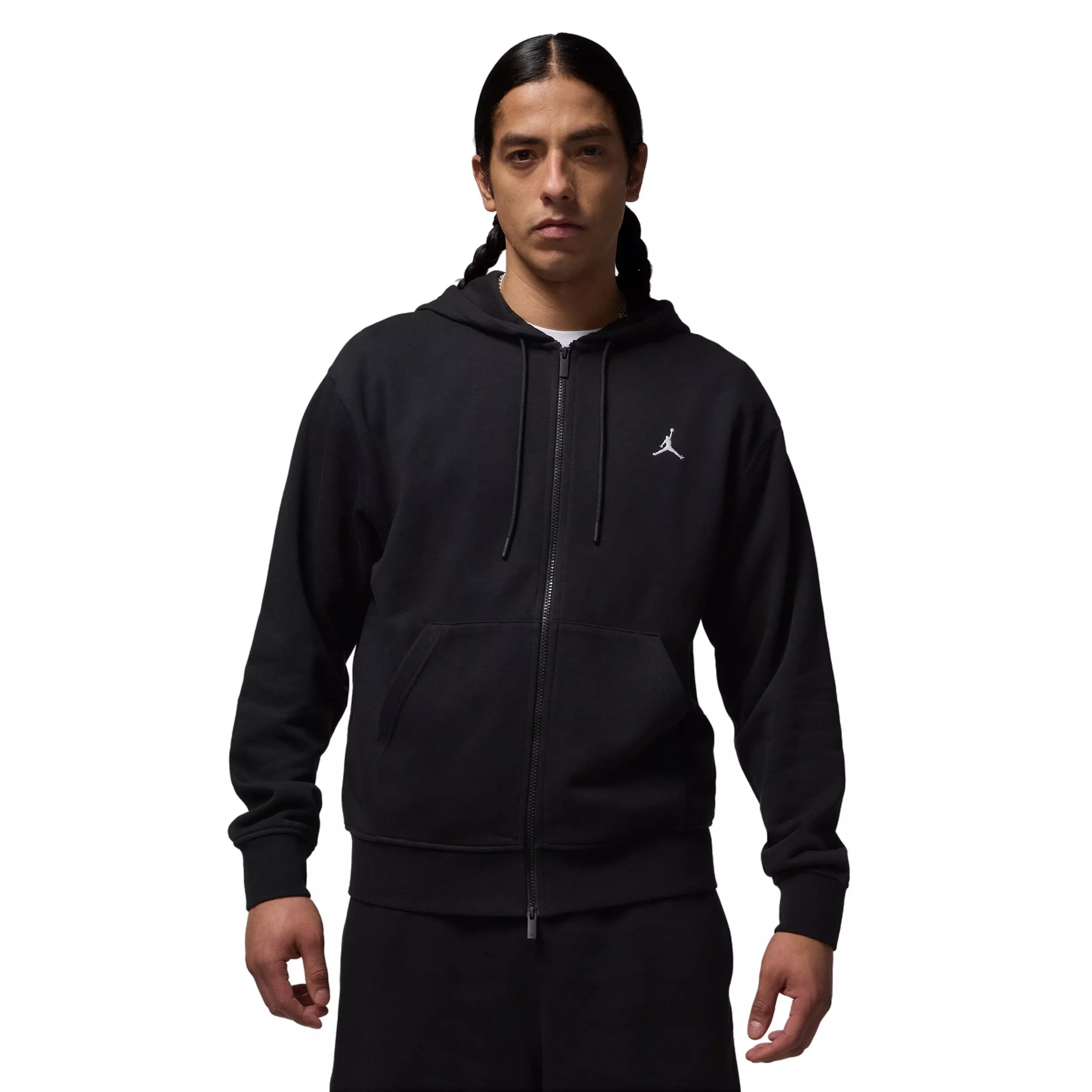 What's a necessity for any day of the week? A comfortable jacket, of course. Smooth on the outside with tiny unbrushed loops on the inside, our midweight French terry black Jordan Men's Brooklyn Fleece Full-Zip Jacket is breathable enough to wear all year long.