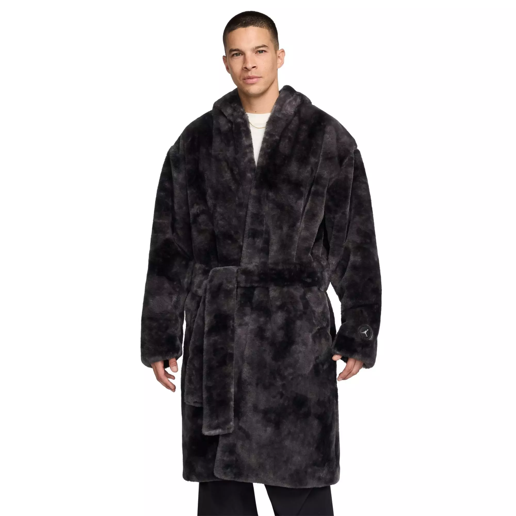 Wrap up in the Jordan Men's Brooklyn Holiday Fur Robe, a plush layer that blends cozy faux-fur softness with signature Jumpman heritage. The relaxed, oversized fit and embroidered logo deliver an easy, elevated look for downtime or festive mornings.