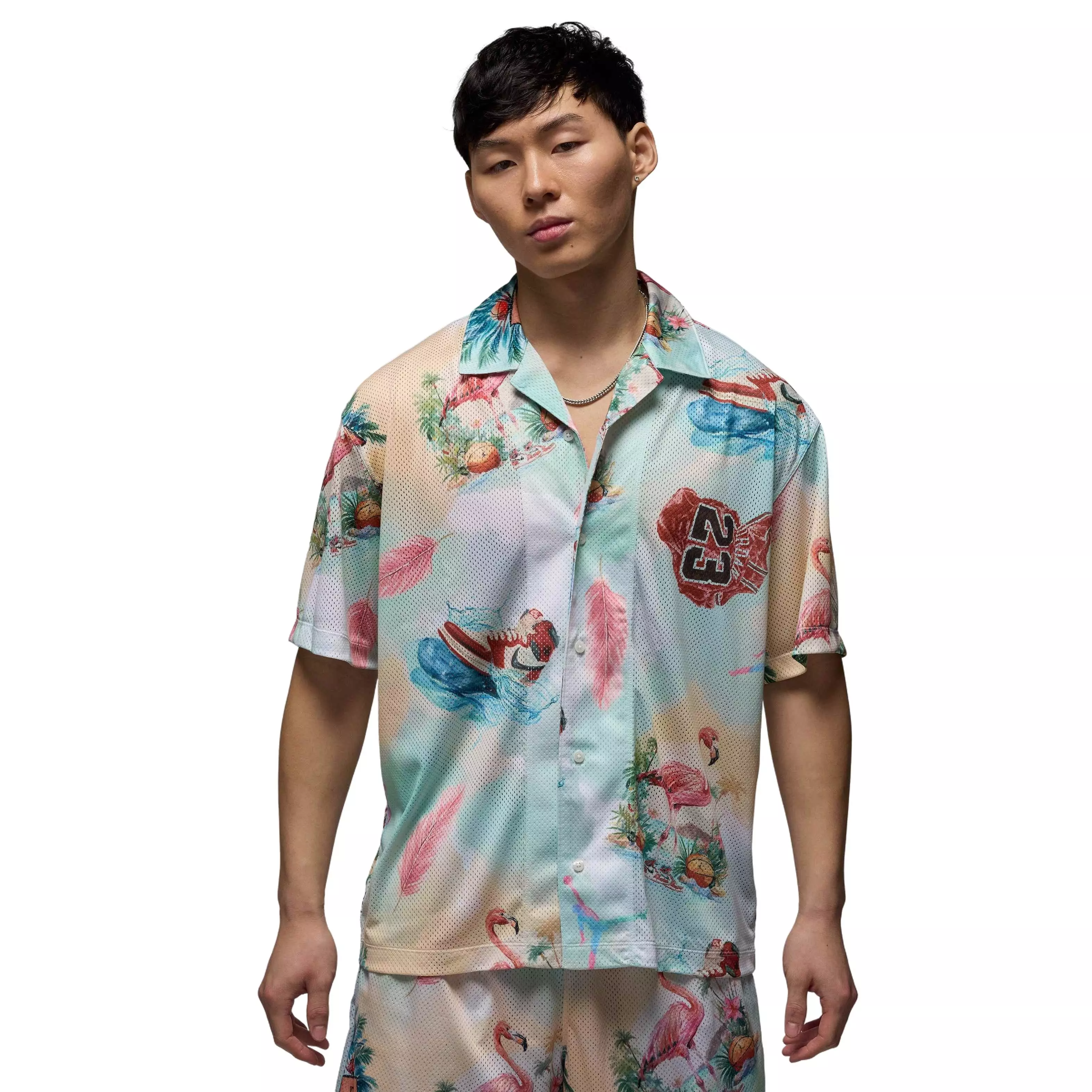 Breezy and effortless, the Jordan Men’s Essentials Printed Camp Top brings summer style to every day. Lightweight mesh with sweat-wicking performance keeps you cool and comfortable, while the relaxed, button‑down silhouette layers easily over a tee or stands on its own. The white-and-blue print adds a clean, sporty edge.