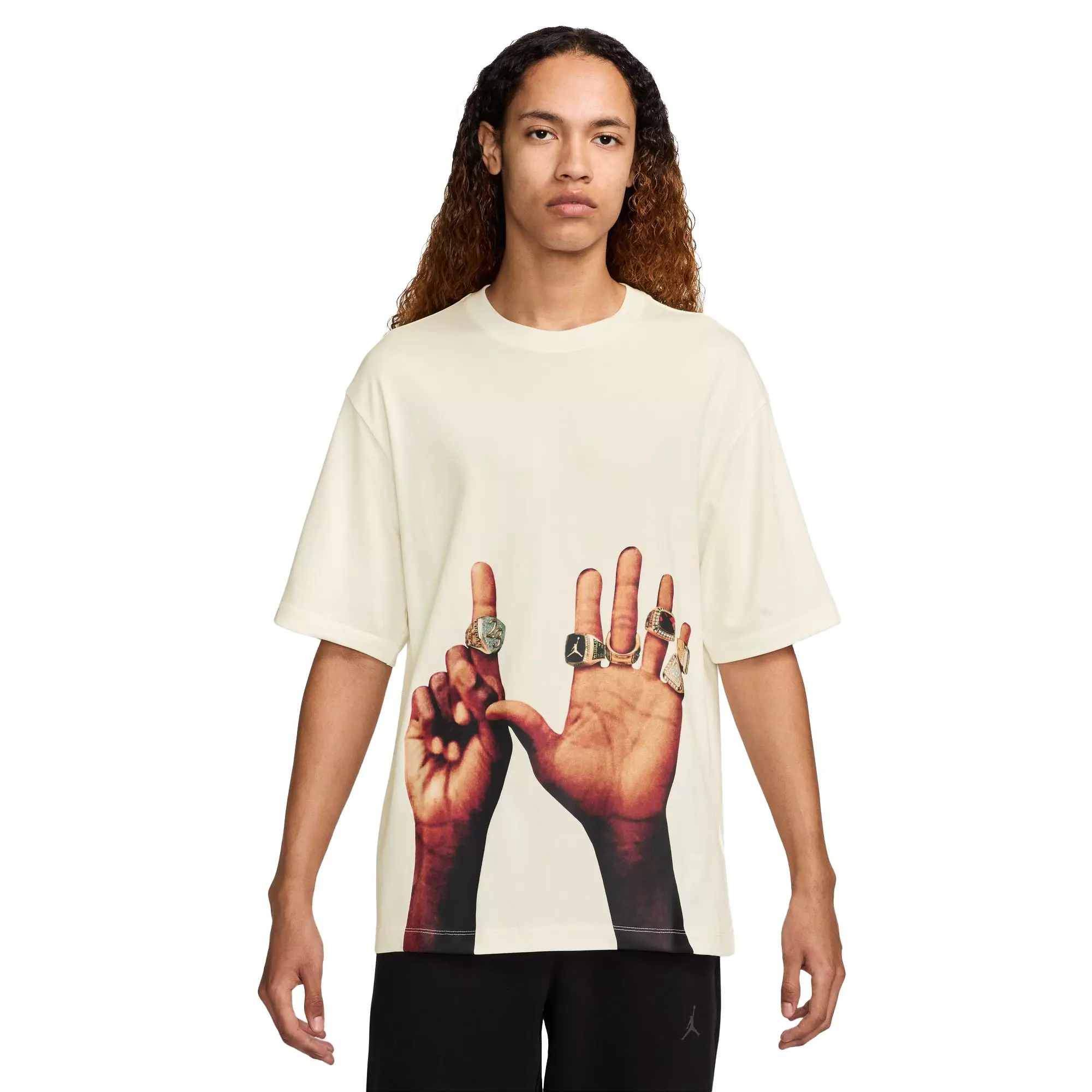 Minimal stitching ensures lasting shape after each wash. Ribbed crew neck and short sleeves deliver structured fit. Iconic Jumpman logo sits on chest, adding game-ready edge. Machine-washable design retains shape and color.