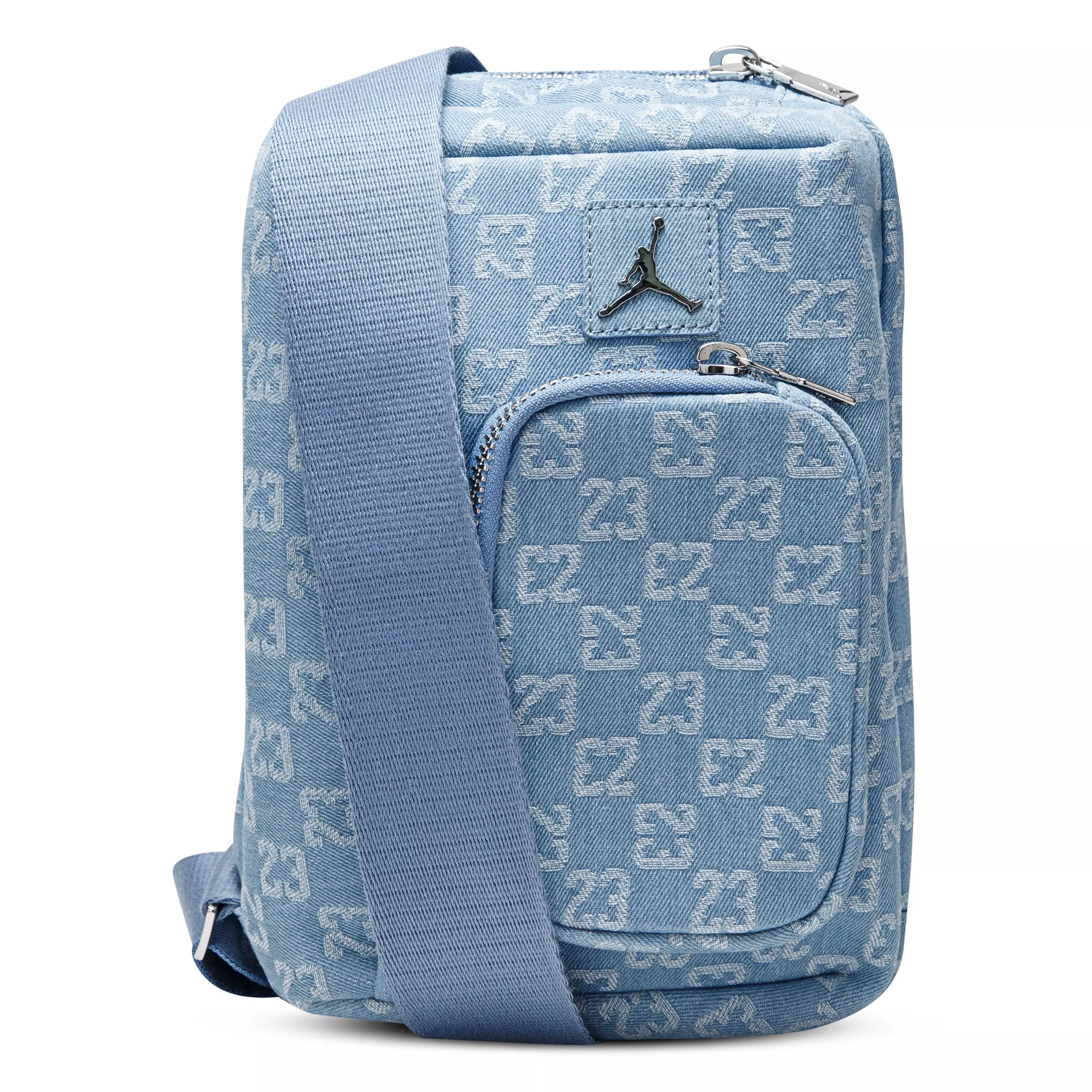 The Jordan Monogram Sling Bag - Denim offers a comfortable carry-all experience. It holds a reusable water bottle, packable jacket and daily essentials while maintaining a sleek profile. Monogram detail adds refined style.