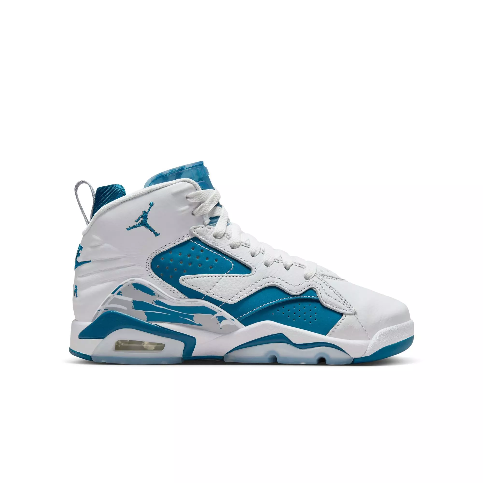 Honor Jordan's first 3 championships with a pair of Jordan MVP "White/Industrial Blue/Wolf Grey" Grade School Boys' Shoe