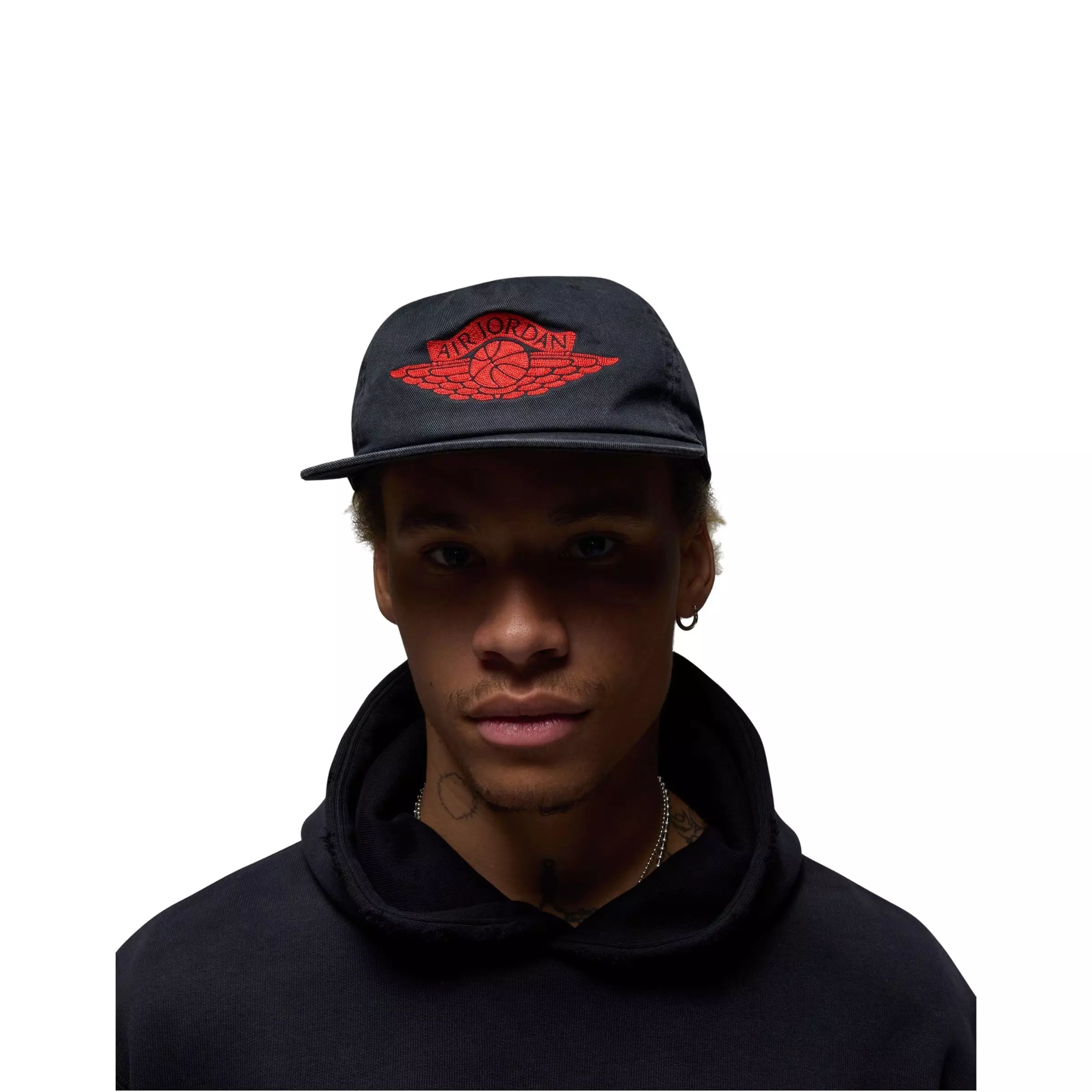 Elevate your style with the Jordan Pro Logo Adjustable Cap-Black/Chile Red. This headwear piece features an iconic logo and two-tone color accent that complements any look.