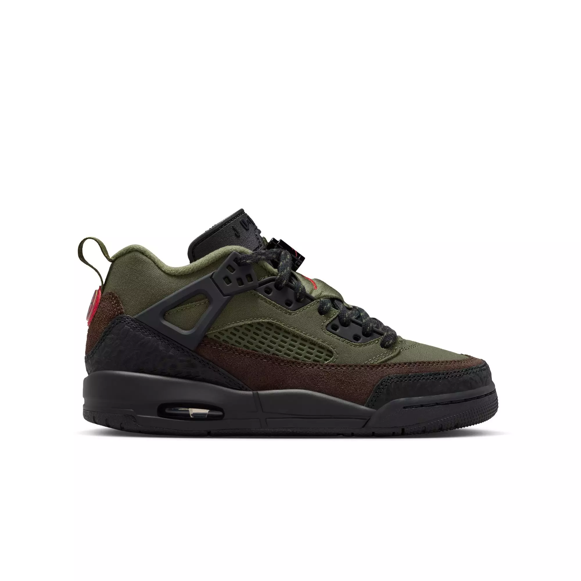 The Jordan Spizike Low "Medium Olive/University Red/Black" Grade School Boys' Shoe blends elements from five classic Jordans into one standout look. A tribute to Spike Lee’s role in bringing Hollywood and hoops together, this hybrid design nods to hardwood history while keeping everyday style front and center.