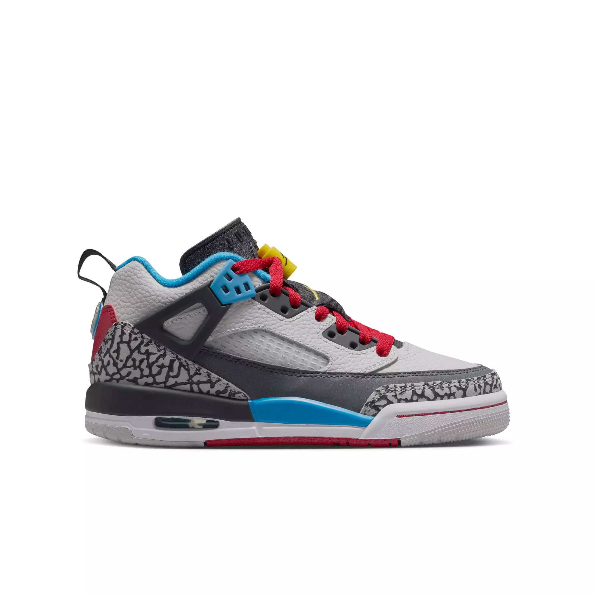 The Jordan Spizike Low SE "Neutral Grey/Varsity Maize/Surf Blue" Grade School Boys' Shoe blends iconic hoops heritage into a bold, everyday sneaker. Crafted for comfort with a supportive build, it pairs classic Jordan details with a fresh low-profile look that’s easy to wear to class, practice, or weekends out.