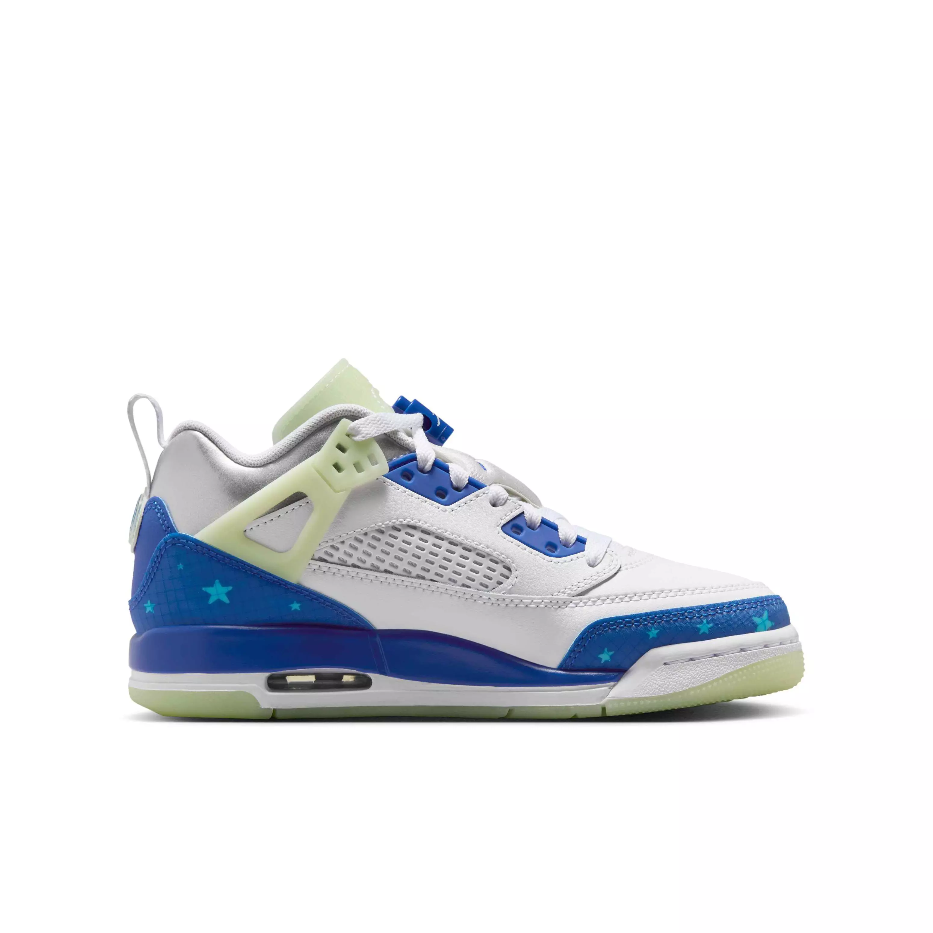 The Jordan Spizike Low "White/Volt Tint/Metallic Silver/Hyper Royal" Grade School Boys' Shoe takes elements of five classic Jordans, combines them, and gives you one iconic sneaker. It's an homage to Spike Lee formally introducing Hollywood and hoops in a culture moment. You get a great looking pair of kicks with some history. What more can you ask for? Ya dig?Features