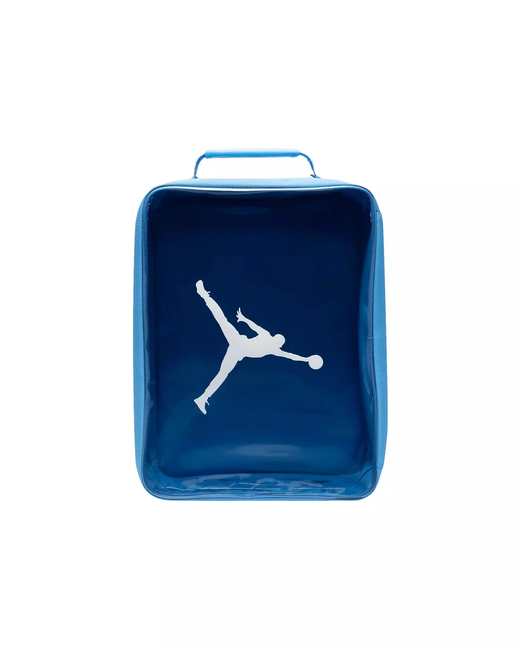 When you're going on a trip and you don't want to risk your Jordans getting scuffed while on the plane, train or automobile, this Jordan The Shoe Box Bag - Light Blue comes in clutch. It's got a zip around closure and a padded, lined interior to keep your investment pristine, a grab handle for easy carry and the bag itself has a shoebox-like structure to help protect what's inside from getting smashed (but still, try to stack on top of larger baggage for the best protection).