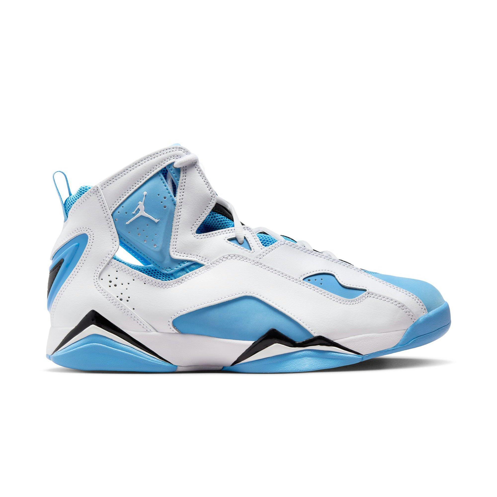 The Jordan True Flight "White/University Blue/Black" Men's Shoe takes design elements from the AJ7 to create a sneaker that brings a classic performance look to streetwear. It has premium leather structured around an internal sleeve for a secure fit that's easy to get on and off.