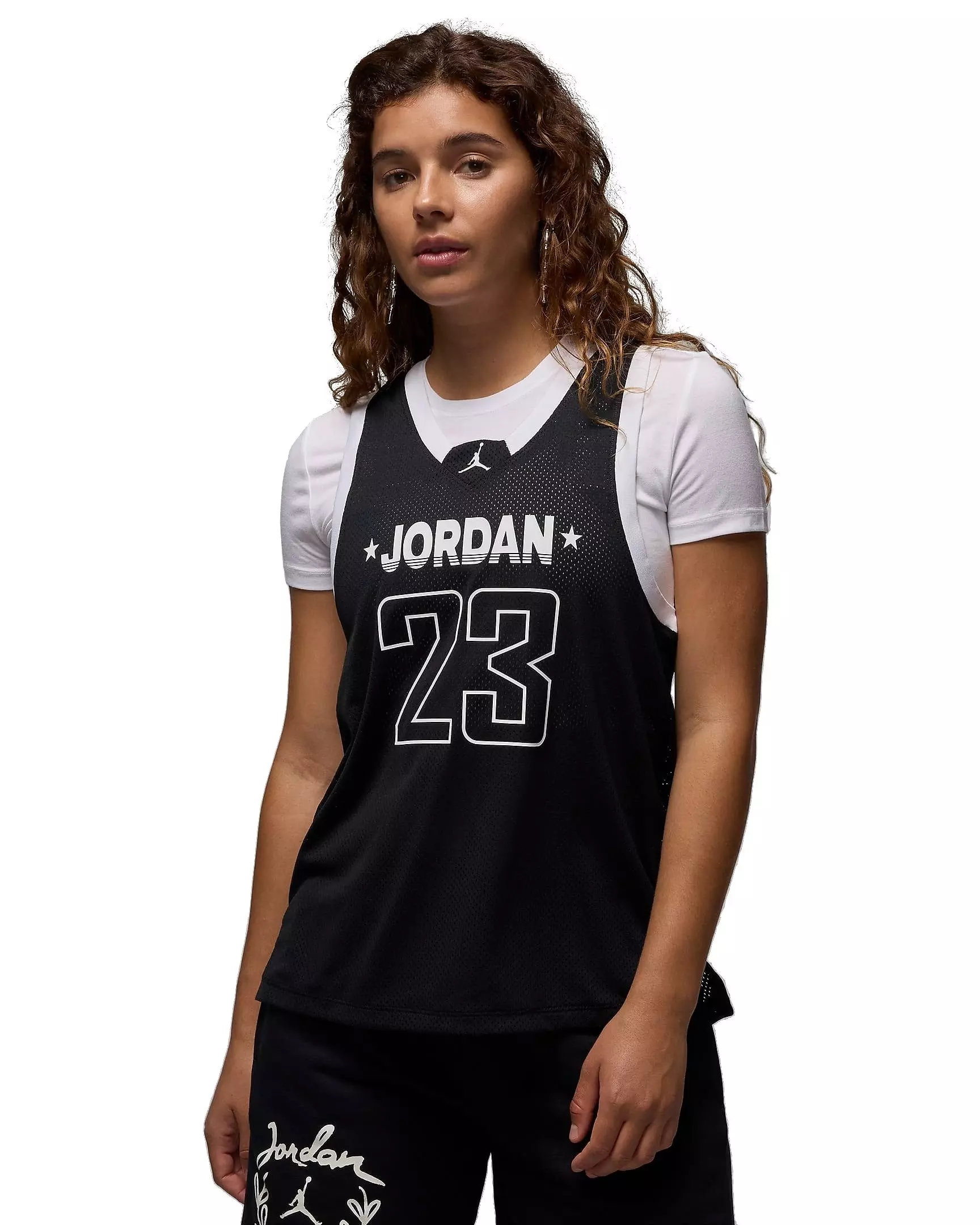 Refresh your look with the Jordan Women's 23 Jersey Tank, built with lightweight mesh that breathes when the day heats up. A relaxed, elongated cut delivers extra coverage, while the V‑neck and dropped armholes keep movement easy and the vibe casual.