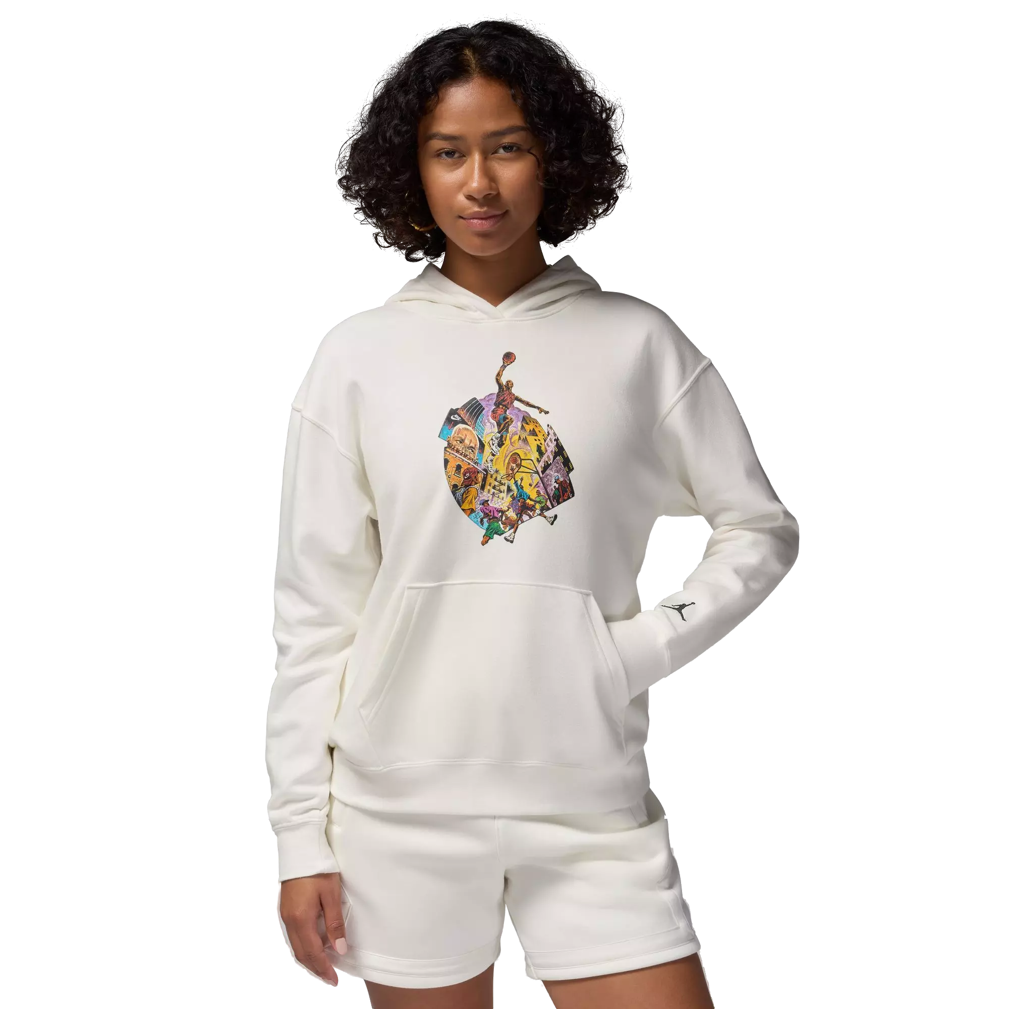 Embrace casual comfort with the Jordan Women's Brooklyn Fleece Graphic Pullover Hoodie. It features a smooth exterior and a brushed interior that traps warmth and feels soft against skin.