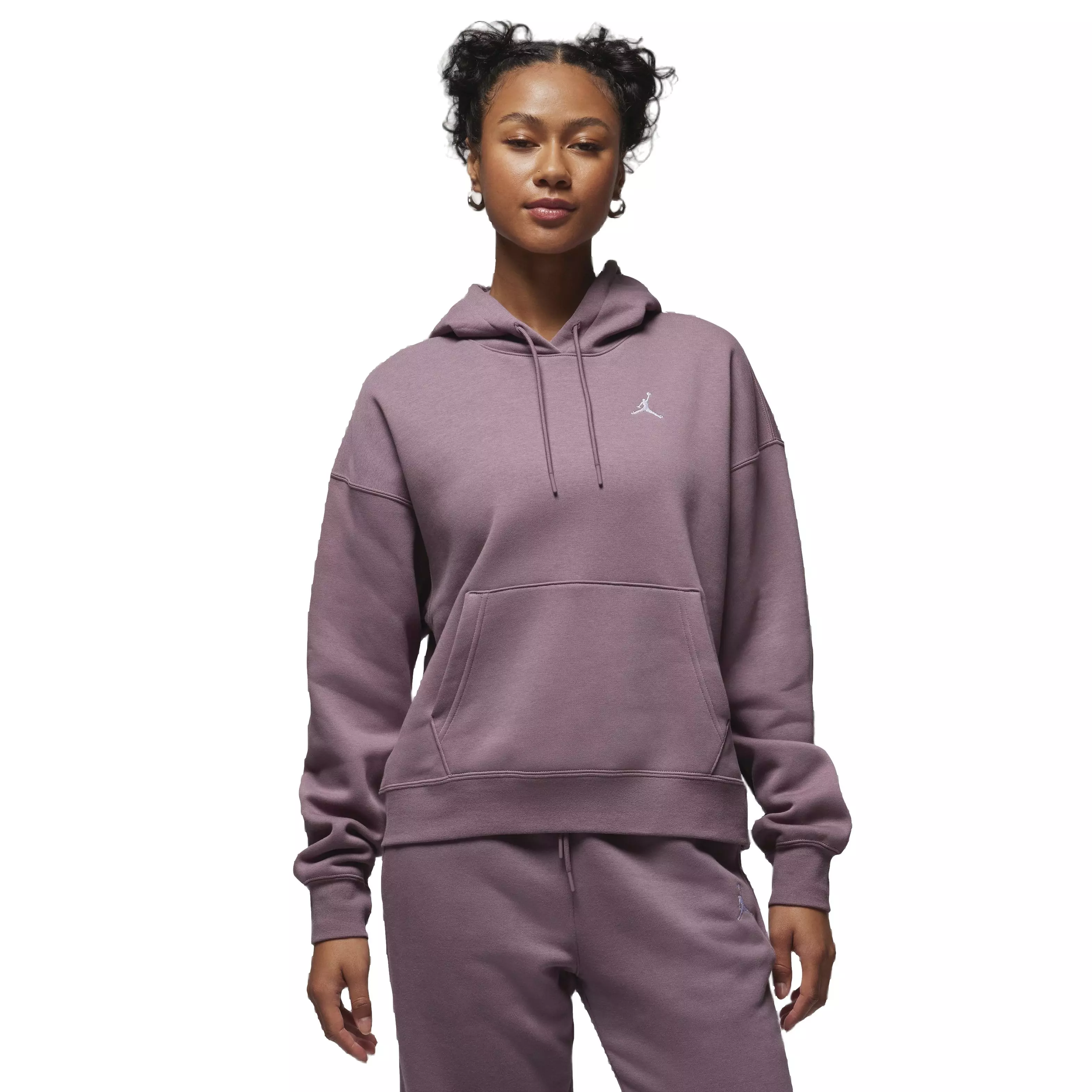 Take soft mid-weight fleece, add a relaxed fit, and multiply that by the embroidered Jumpman on the chest. We'll do the math—it's your new favorite Jordan Women's Brooklyn Fleece PO 2 Hoodie. Drop shoulder seams create visual distinction and give you more room to move, cementing this cozy layer as the perfect solution for any 'fit.Features