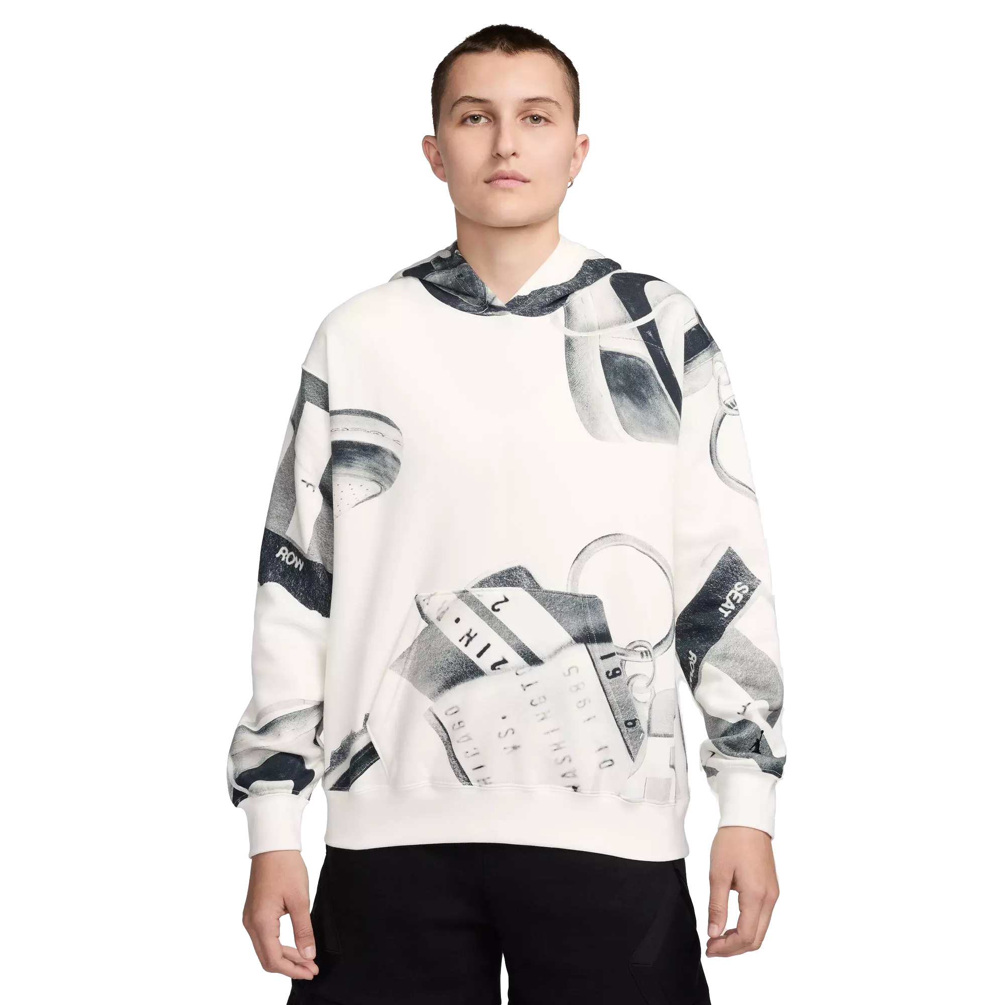 Enjoy a relaxed look with the Jordan Women's Brooklyn Fleece Printed Pullover Hoodie. This loose-fit pullover features an all-over print, a smooth exterior and a plush interior.