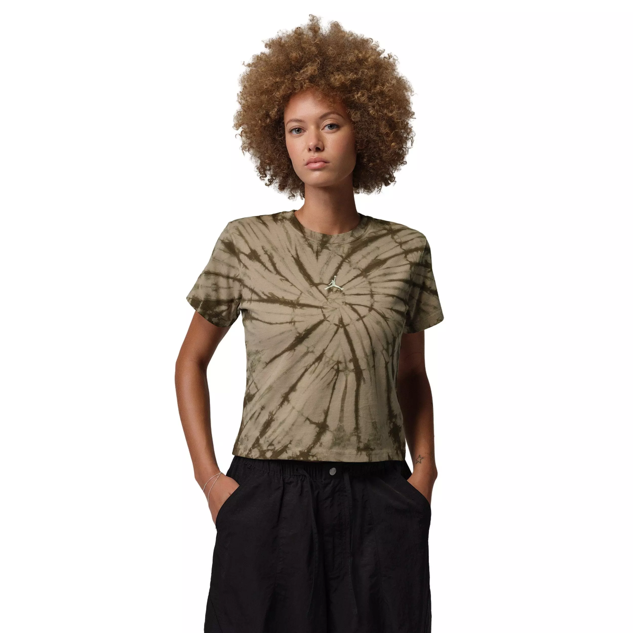Meet your new favorite tie-dye staple. Comfy cotton keeps this always-ready soft Jordan Women's Brooklyn Graphic AOP Tee, making it perfect for everyday wear.