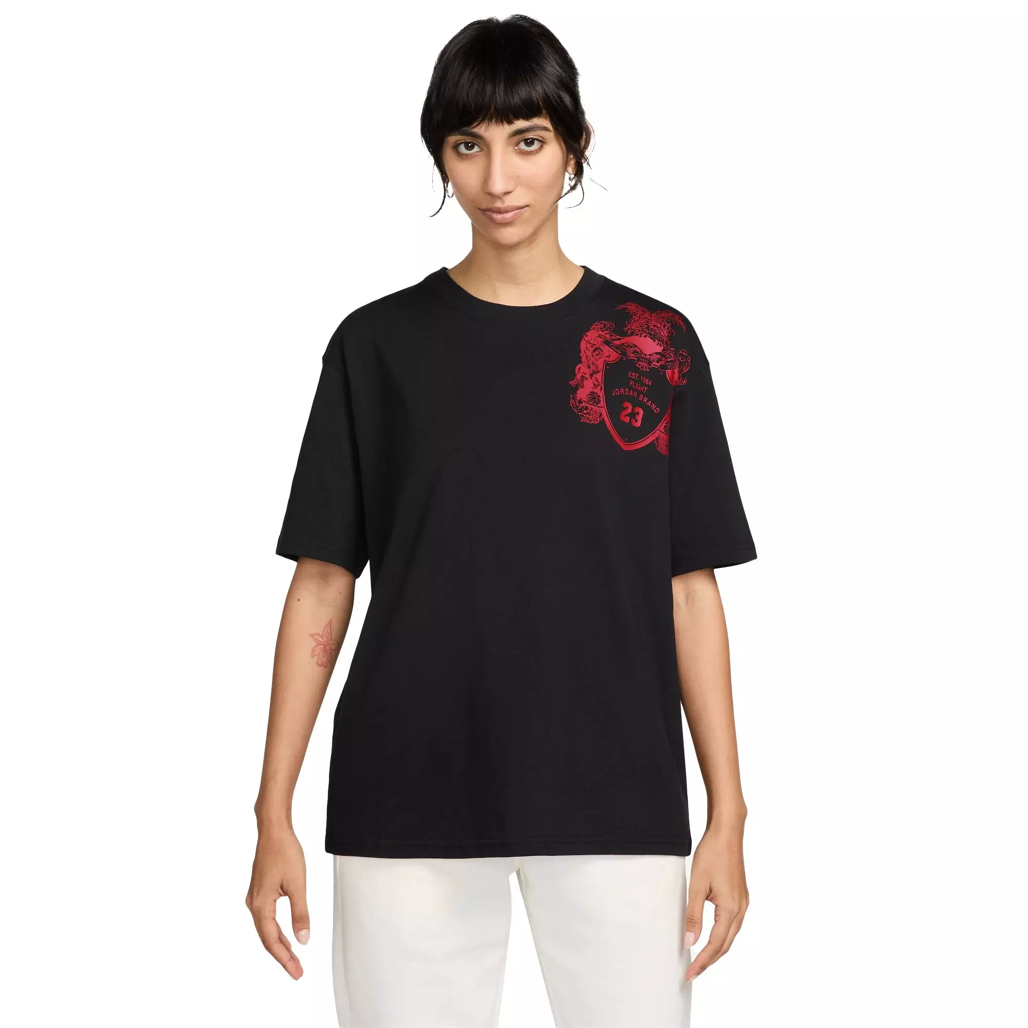 Jordan Women's Emblem Graphic Tee features the bold Jordan crest graphic printed at the chest. The classic design adds authentic appeal to every outfit.