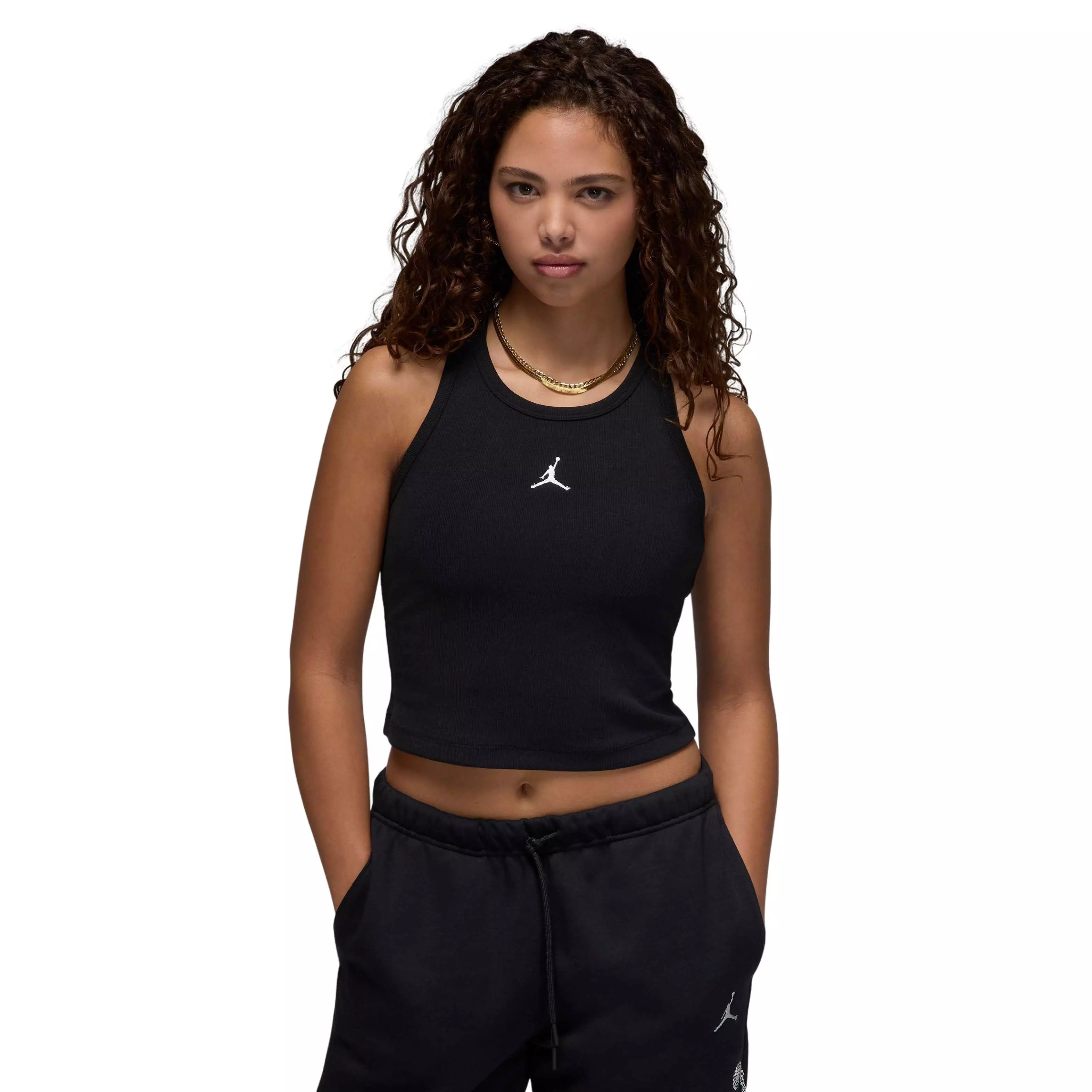 The Jordan Women’s Essentials Tank delivers a sleek, fitted look with a cropped silhouette that pairs easily with your everyday rotation. Soft, ribbed fabric with comfortable stretch moves with you, offering a supportive feel without restricting your stride or swing.