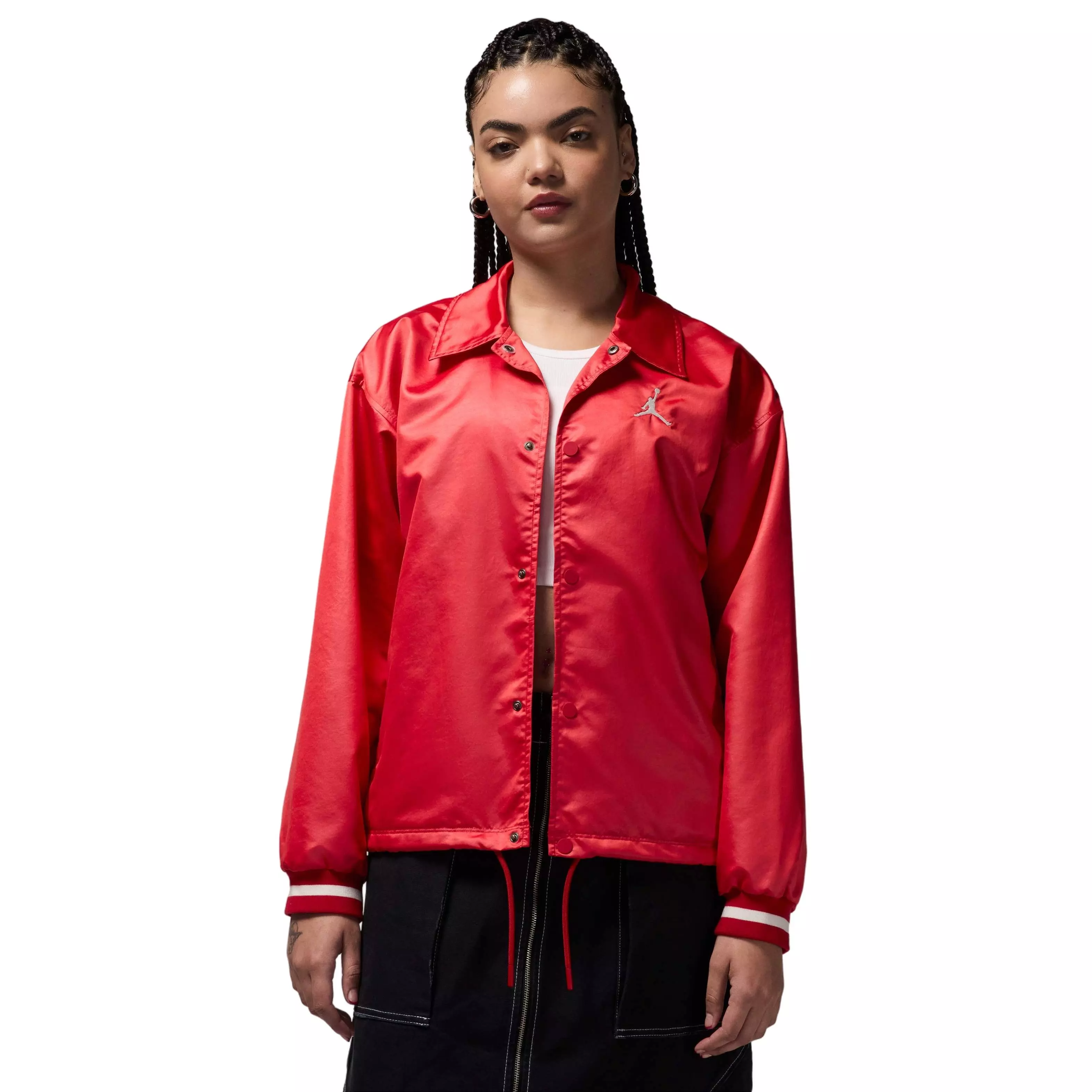 Celebrate more than four decades of hoops heritage with the Jordan Women's Lightweight Coaches Jacket. Its smooth satin shell pairs with a woven nylon lining to deliver a light, easy feel you can layer through changing temps.