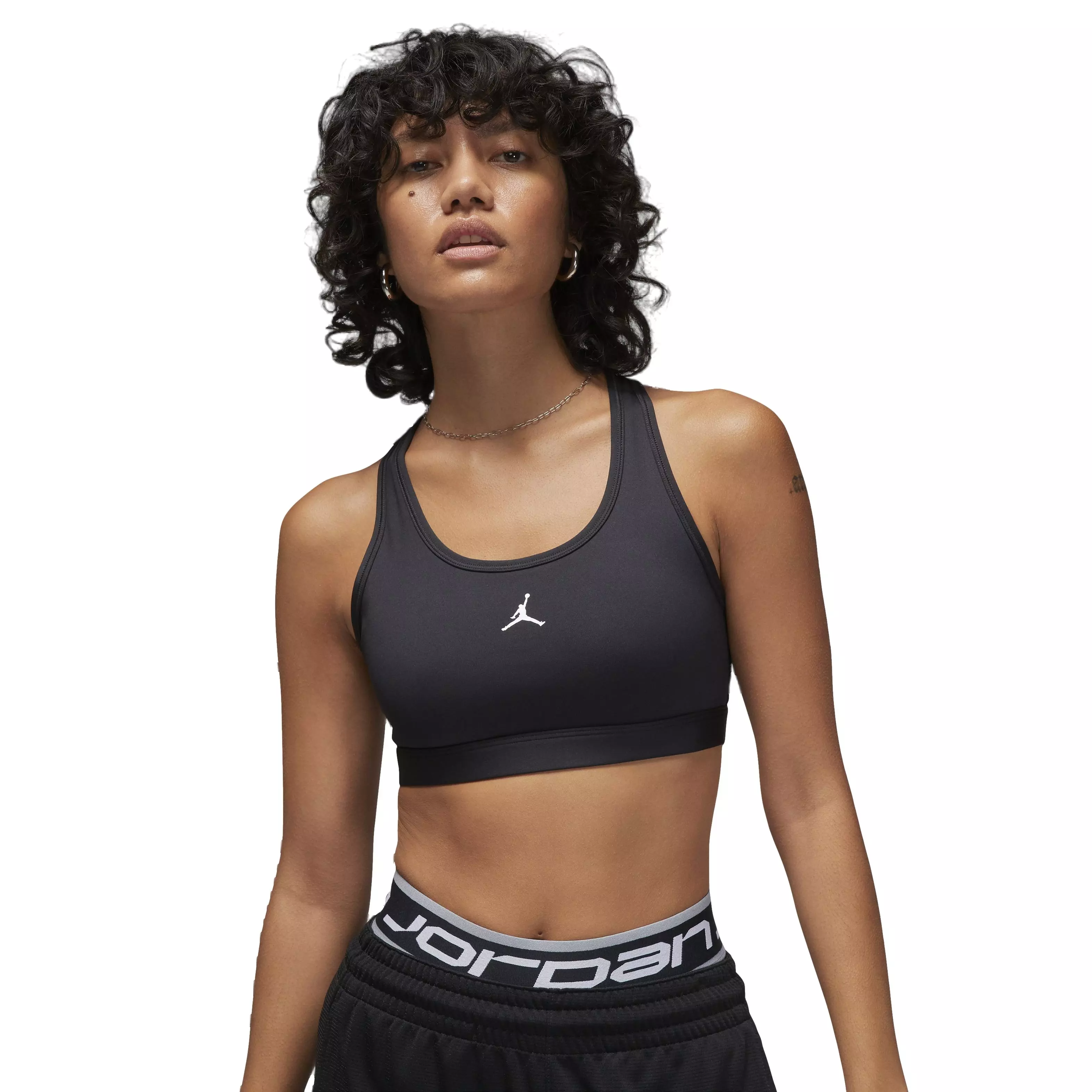 Push your training further in the Jordan Women’s Medium Support Padded Jumpman Bra, built to move with you from warm-up to cooldown. Sewn-in pads stay put to prevent shifting or folding, while sweat-wicking fabric helps you feel dry and focused through high-energy sets and dance classes. Medium support delivers a secure, stay-in-place feel.
