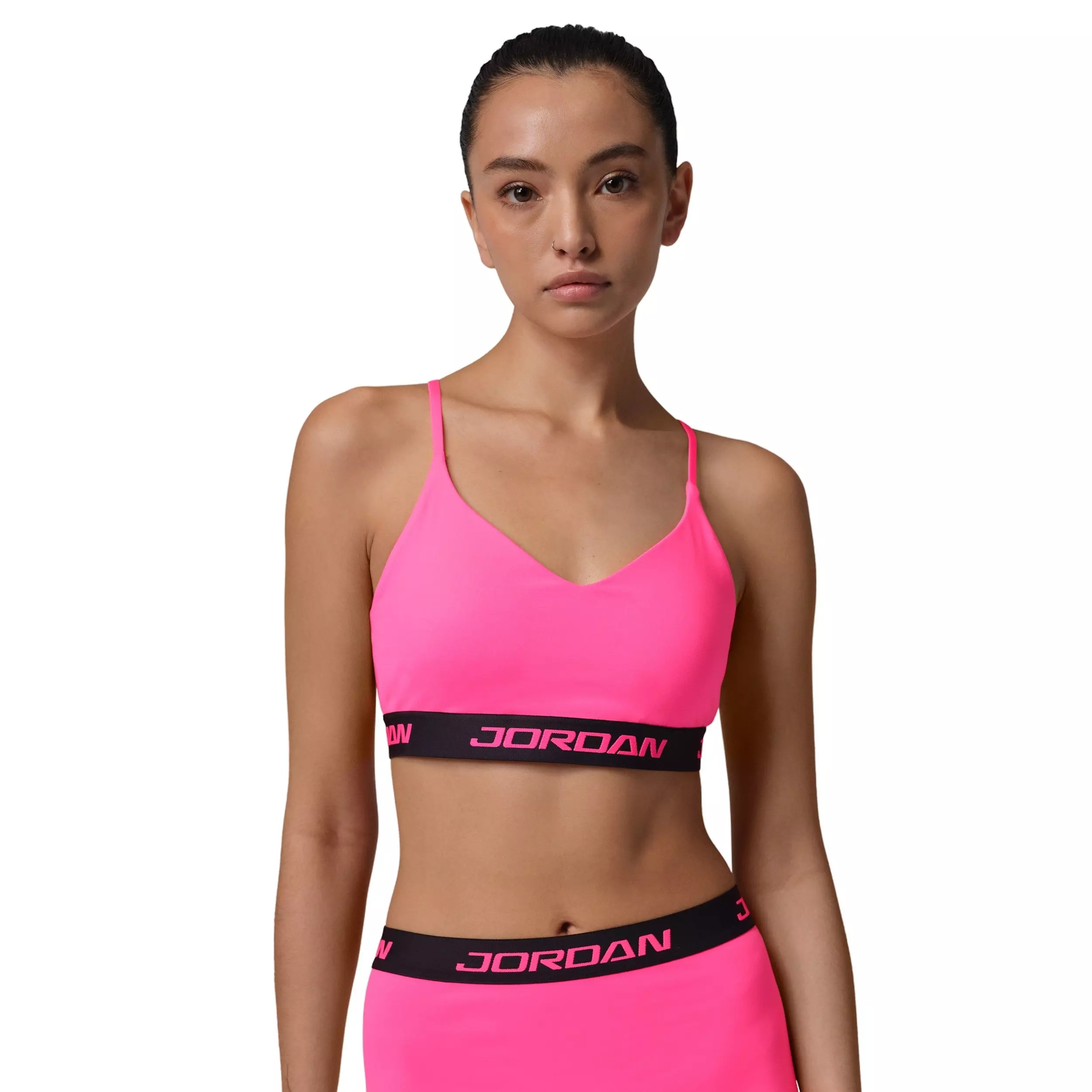 This low-profile pink Jordan Women's Sport Essentials Padded Adjustable Sports Bra gives you light support with plenty of freedom that's great for low-impact workouts or 24/7 comfort. Adjustable straps and removable pads let you get the perfect fit and support for whatever you're doing.Features