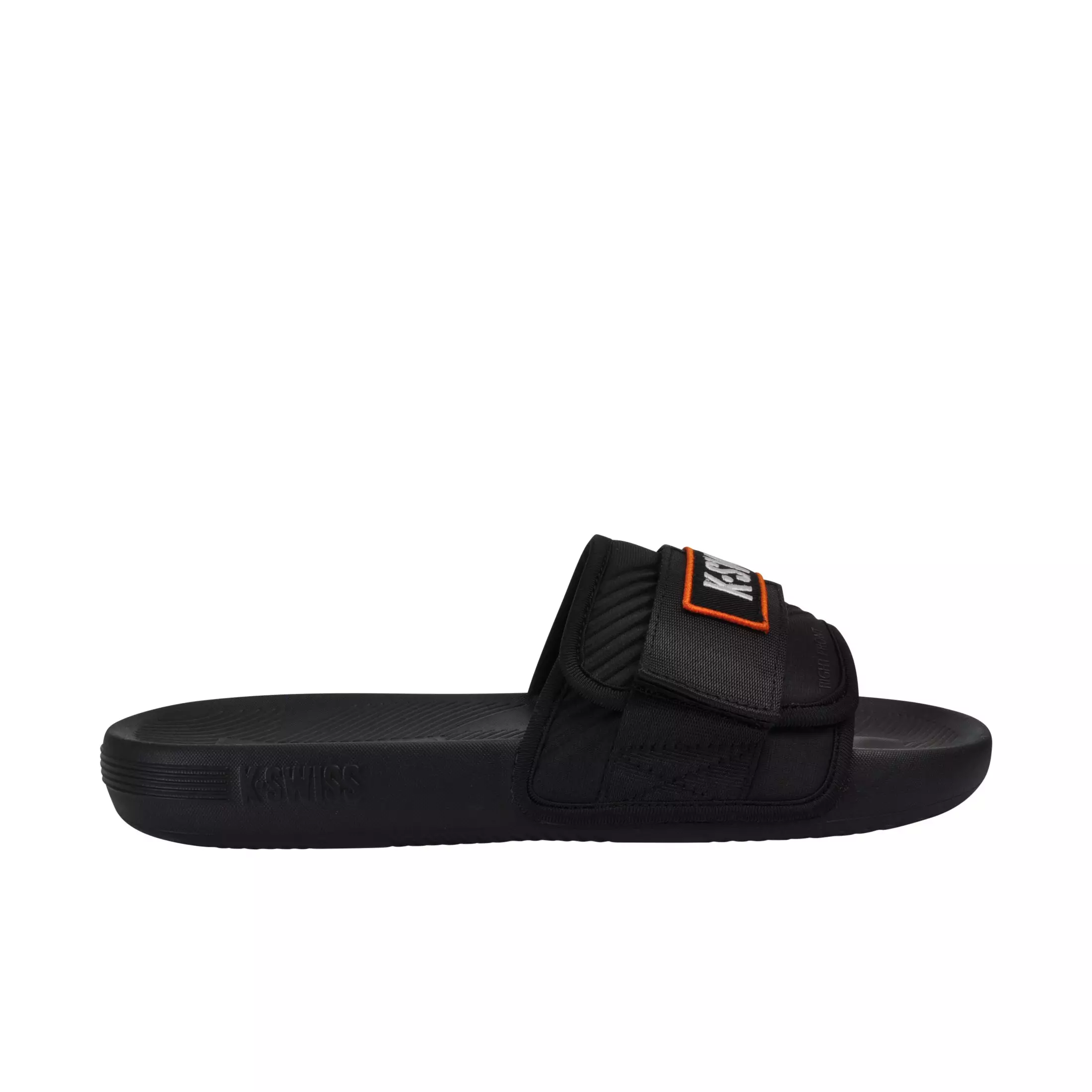 K-Swiss X McLaren "Black/Papaya" Men's Strap Sandal SlideEngineered for all-day comfort, this classically styled and easy to wear K-Swiss X McLaren "Black/Papaya" Men's Strap Sandal Slide inspired by race harness delivers a soft and lightweight EVA footbed for a cushioned ride. The linear McLaren graphics on the footbed provide anti-slip grip and help expel water.