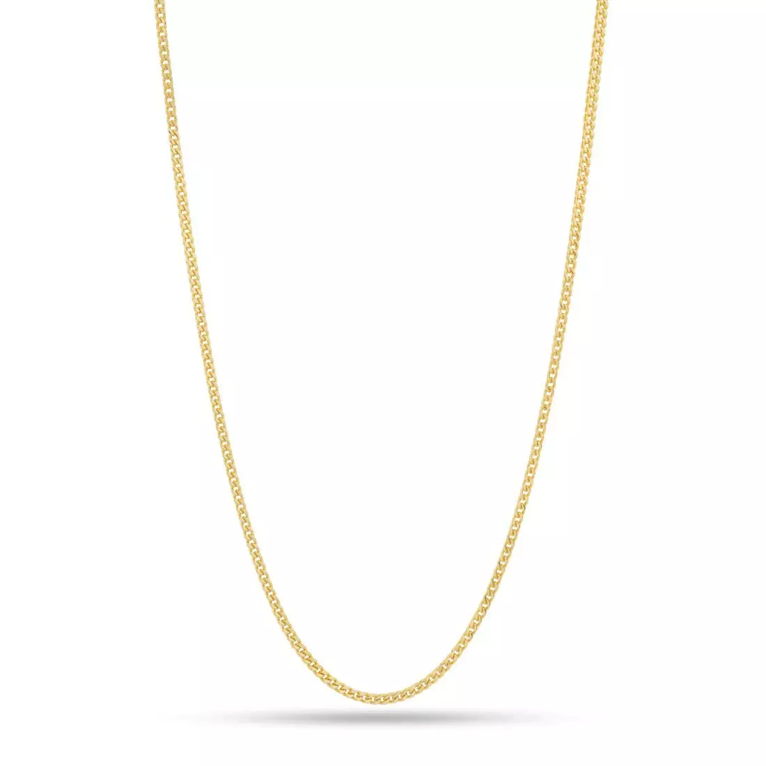 King Ice 14k Gold Plated 3mm Franco Chain Necklace features a stainless steel core with genuine 14k gold plating and delivers an iconic hip hop style. This chain offers lasting shine and reliable comfort.