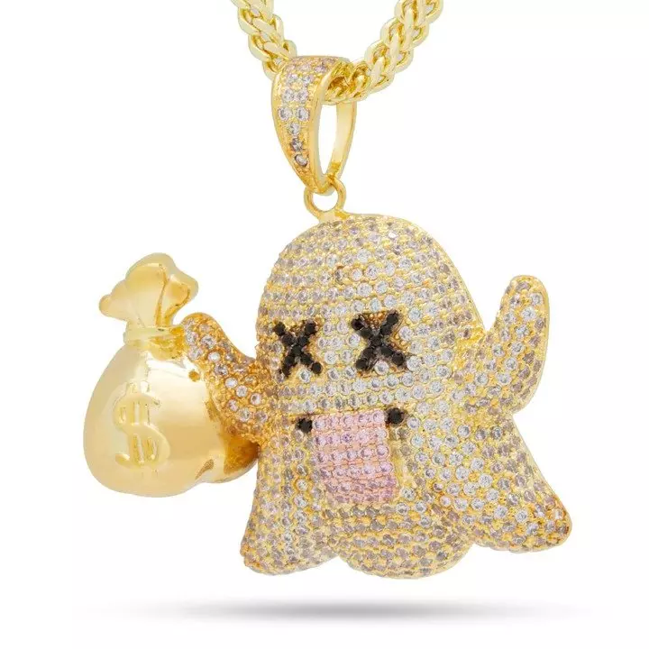 King Ice Money Ghost Emoji Necklace
