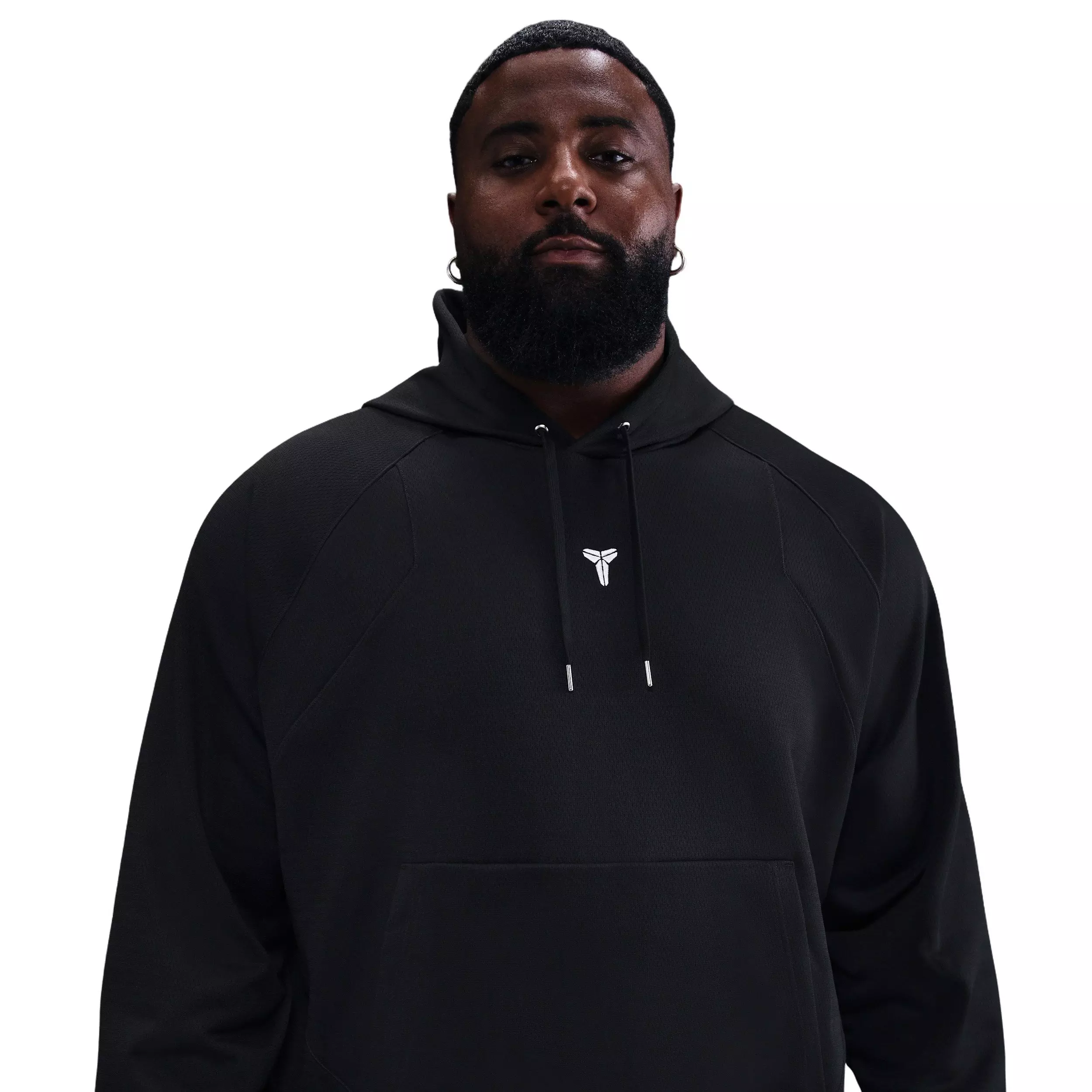 Stay warm on and off the court in the Kobe Men’s Therma-FIT Pullover Hoodie - Black. Its premium dual-layer build pairs a breathable, mesh-like outer with a soft, brushed interior to help retain heat without weighing you down. Therma-FIT technology helps manage your body’s natural warmth during cool-weather wear.