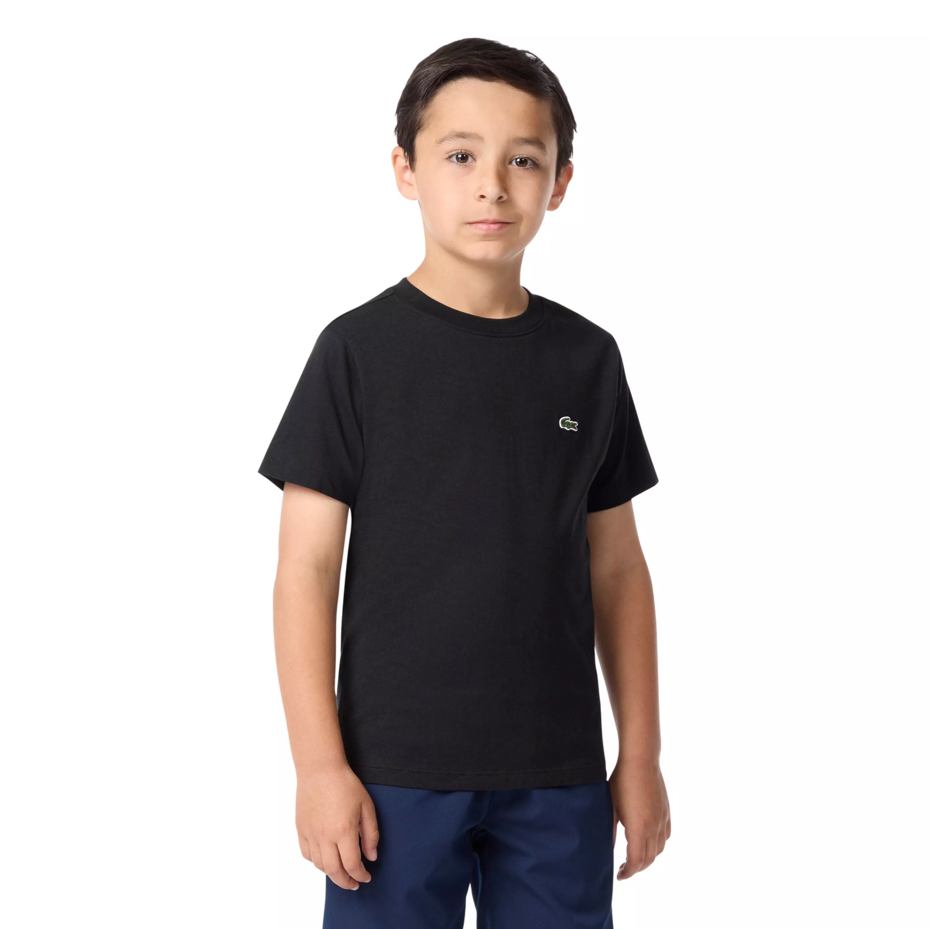 Featuring a small, but iconic croc logo, this black Lacoste Big Boys' Core Tee will become the favorite, goes-with-anything top, made of organic cotton jersey in a classic short sleeve silhouette that fits all kids.Features