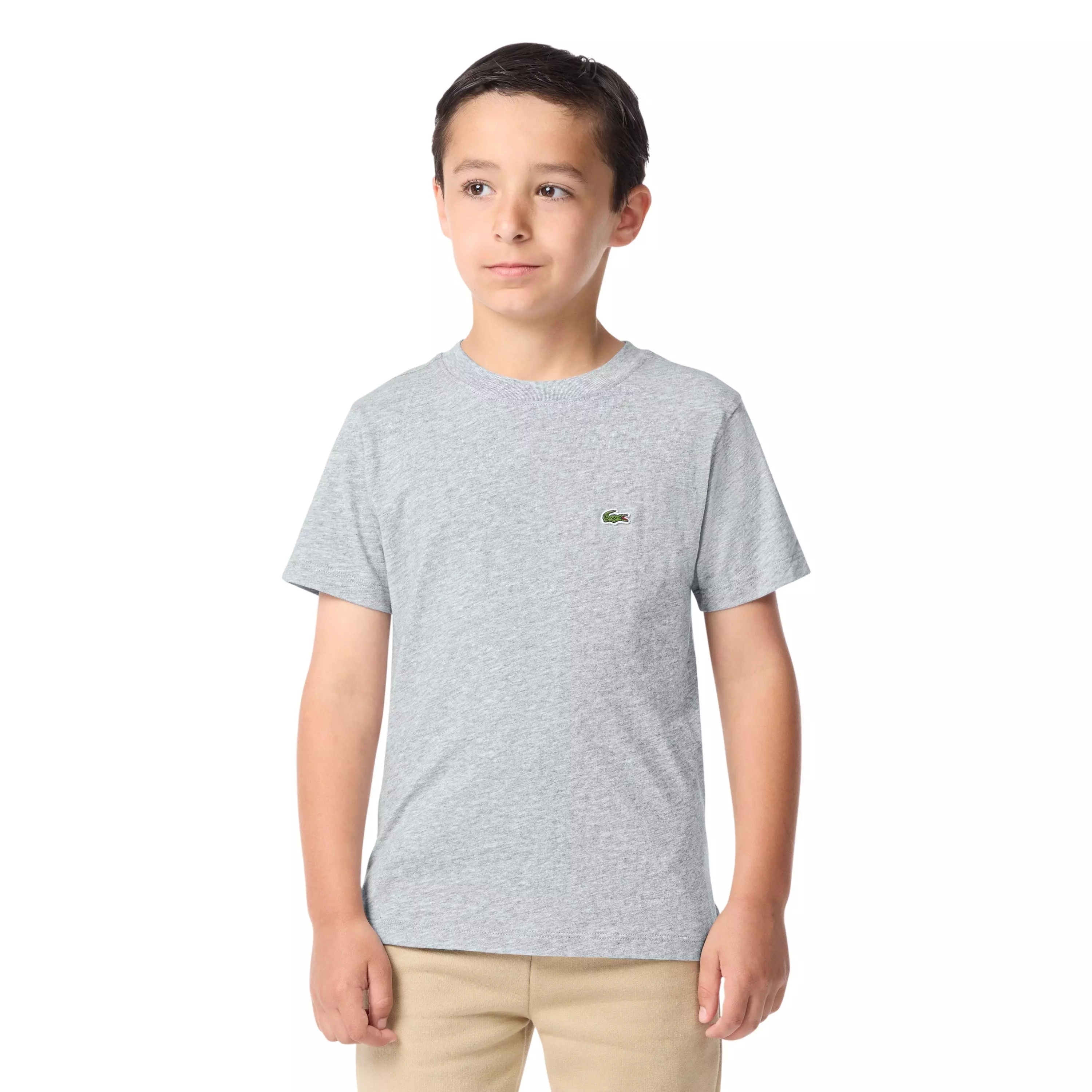 Featuring a small, but iconic croc logo, this grey Lacoste Big Boys' Core Tee will become the favorite, goes-with-anything top, made of organic cotton jersey in a classic short sleeve silhouette that fits all kids.Features