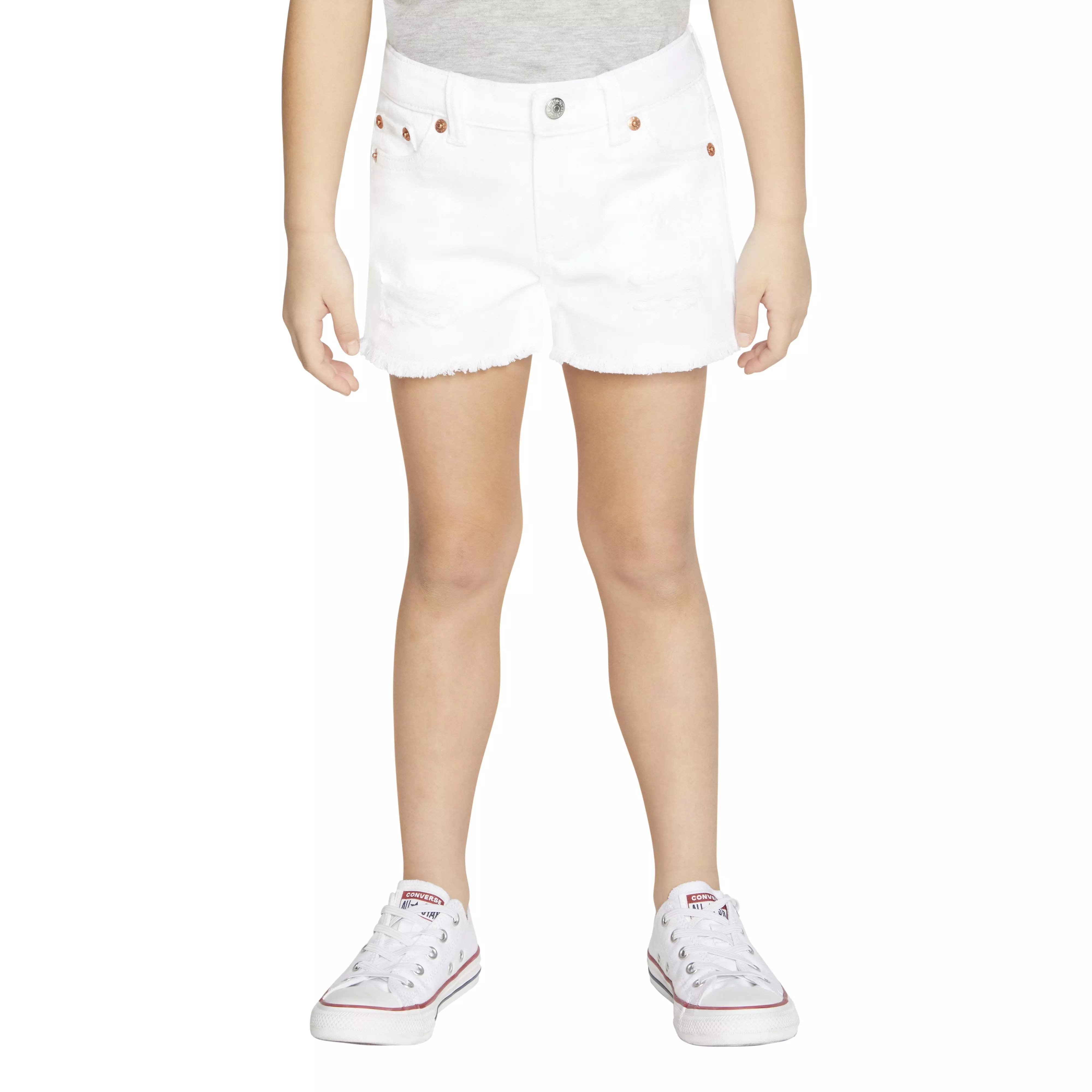 Levi's Little Girls' Girlfriend Fit White Wash Distressed Denim Shorty Shorts