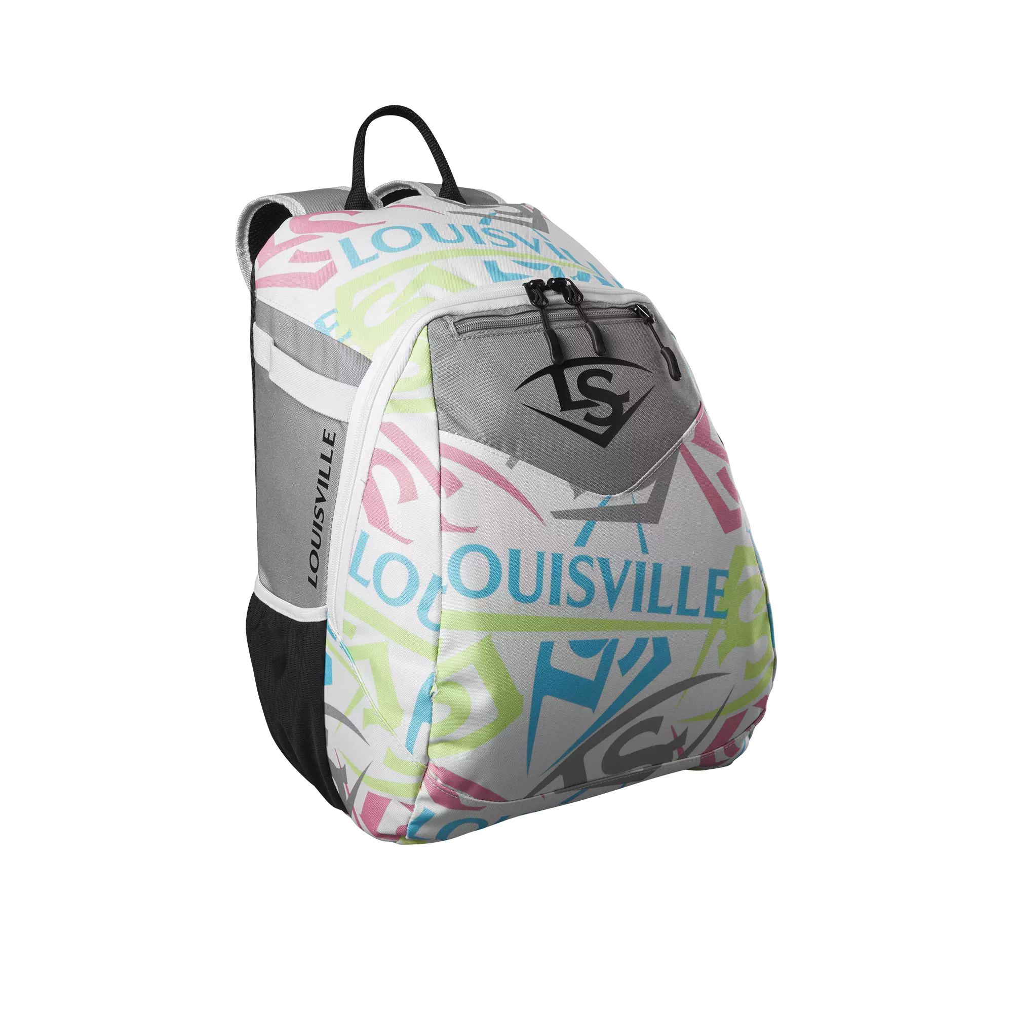 Equip your young ballplayer with organized, go-anywhere storage. The Louisville Slugger Genuine V2 Prints Softball Backpack features a spacious main compartment to stow a youth helmet, fielding glove, and cleats, plus two mesh bat sleeves that double as water-bottle pockets.