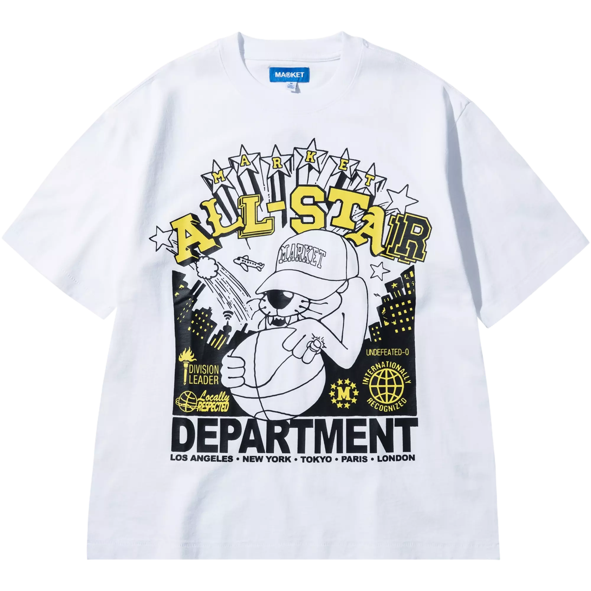 The Market Men's Locally Respected Tee - White combines a cropped length with an eye-catching front graphic for a modern edge. Its relaxed silhouette delivers laid-back appeal that works effortlessly into casual wardrobes.