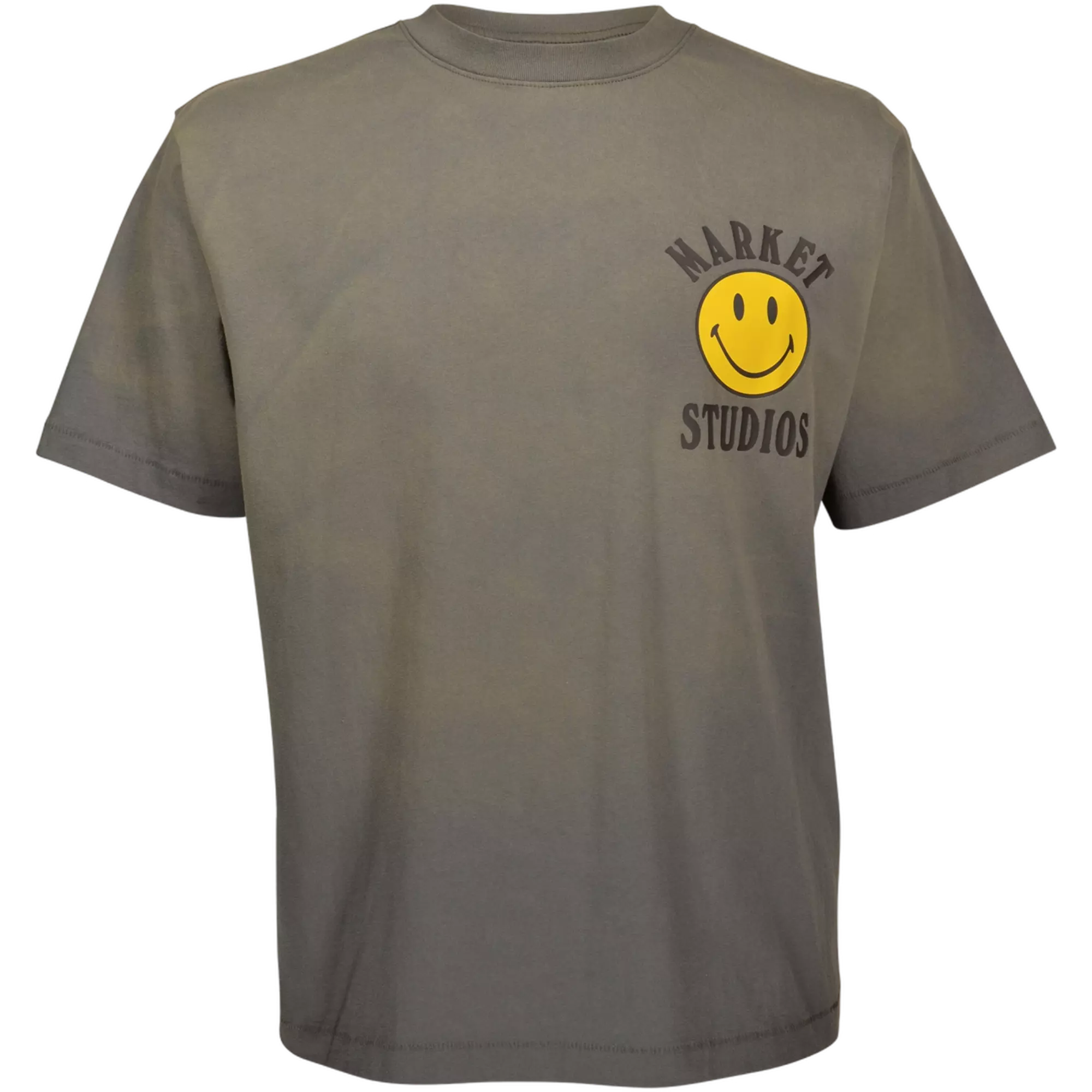The Market Men's Smiley Lockup Tee showcases a bold smiley graphic on soft, breathable cotton. The graphic retains vibrancy through washing and stands out during daily wear.